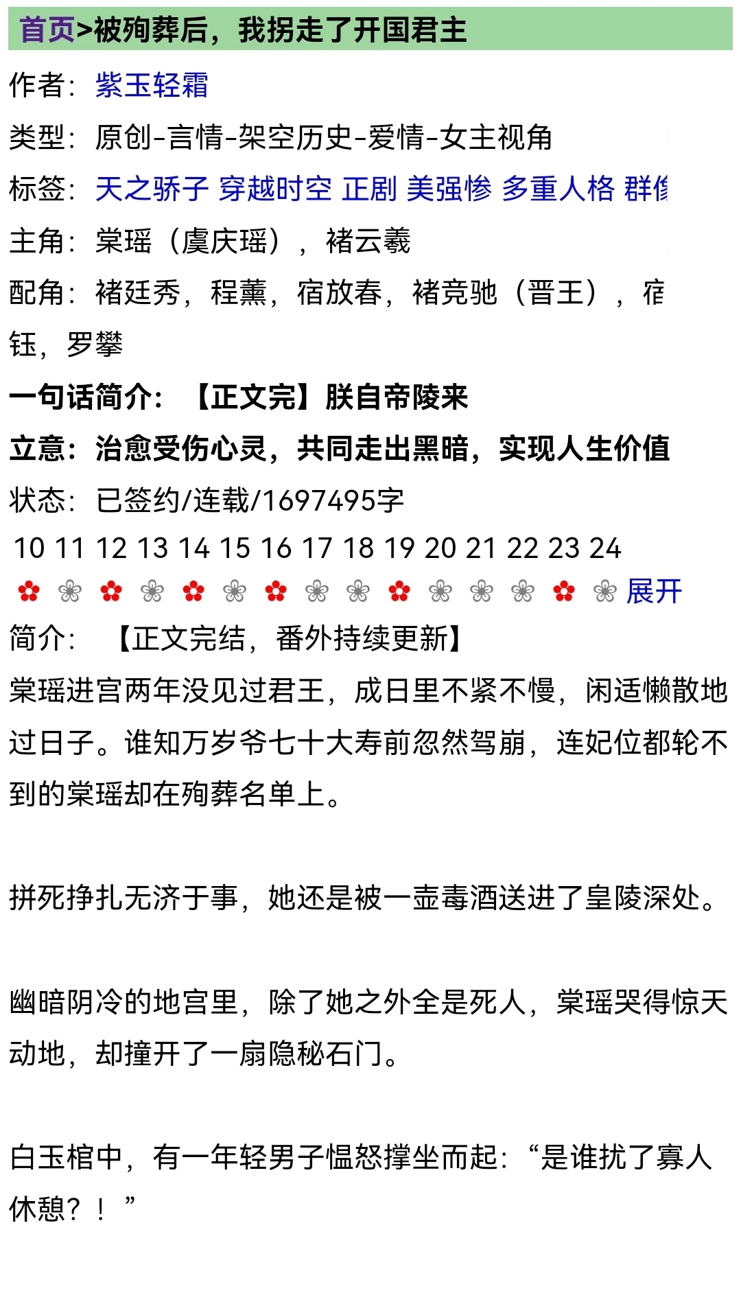 终于完结了,作者约是从2023年写到了2026年,长篇160多万。穿越殉葬女妃子VS重生太上皇,双向救赎文。