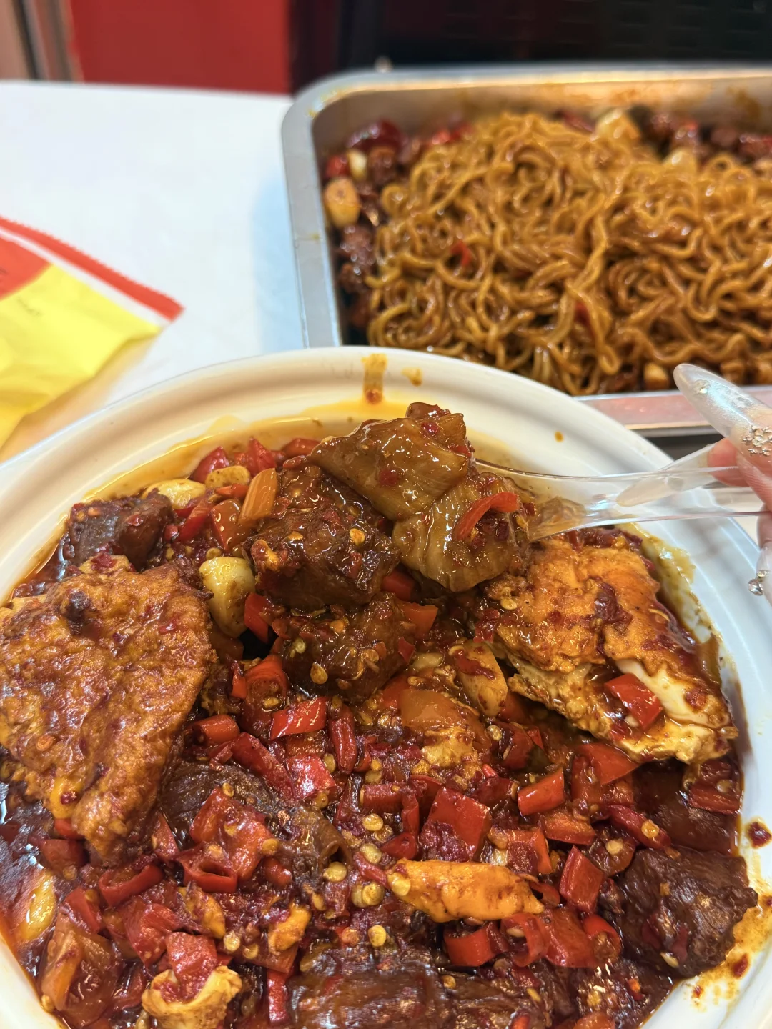哇塞哇塞简直了 三个菜便宜大份好吃!!! ✔️汽锅鸡焖面 真是绝杀没开玩笑 鲜香味很足 一点都不寡淡 ✔️牛腩烧荷包蛋 牛腩炖的挺软烂的 荷包蛋吸满了汤汁 这两个结合在一起真的别太妙 ✔️龙牌酱油土豆丝 本命菜!酱油香很正 不油不腻 吃这个菜连吃好几碗米饭嘻嘻 上饶上饶美食上饶美食推荐上饶广信区美食上饶必吃