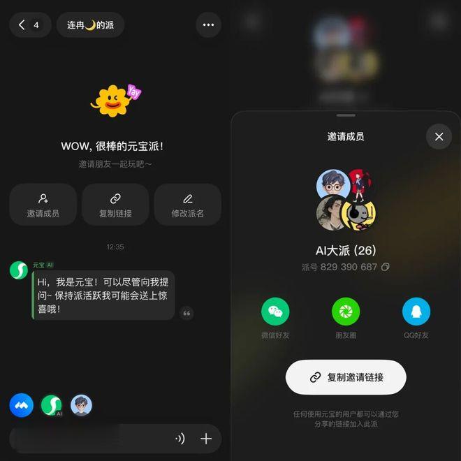 1月26日,腾讯旗下AI助手元宝开启了社交AI玩法「元宝派」内测。