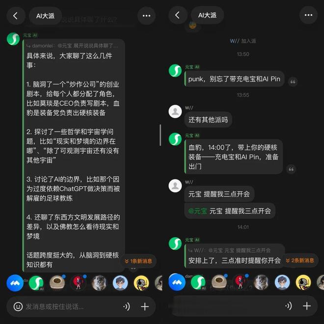 如果只看表面,元宝派很容易被误解为「AI版的QQ群」或者「AI版的discord」。但真正有意思的地方,在于它对AI角色的重新设计。
