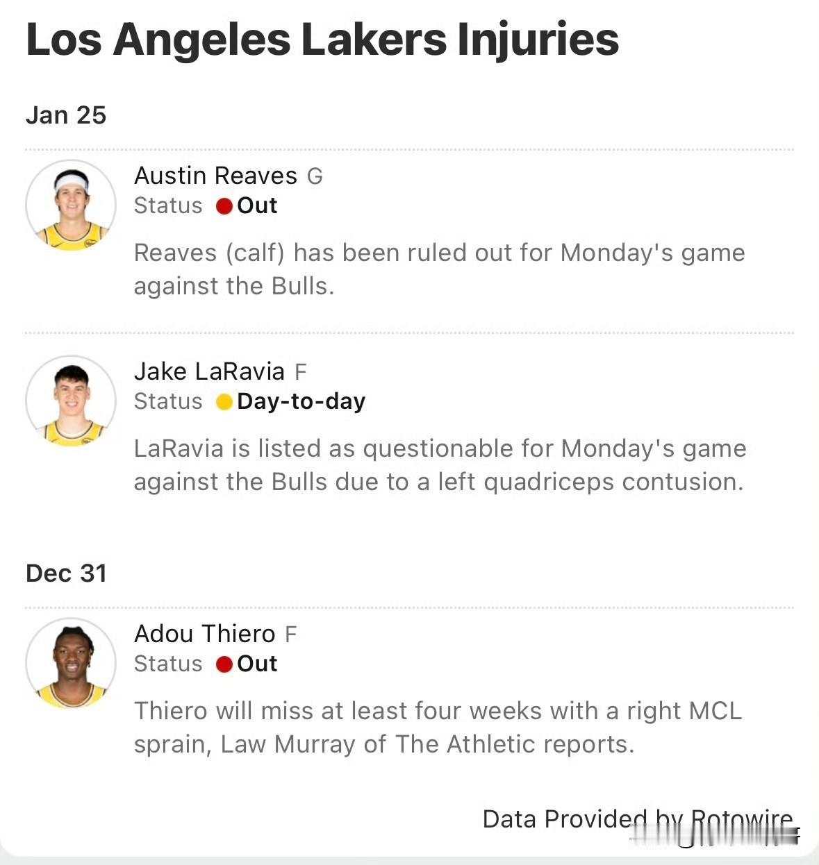 湖人vs公牛比赛预告!!!湖人对阵公牛比赛预测,湖人被看好! 北京时间1月27号上午九点,湖人来到芝加哥挑战公牛队,这场也是硬战,湖人并不好打,又是客场作战,一起来看下比赛预告吧。 湖人伤病情况: 里夫斯和蒂耶罗继续缺阵,拉拉维亚每日观察,可能会打。 公牛伤病情况: 科林斯、埃森格确定不会出战比赛;特雷-琼斯是出战成疑的状态。 目前,从ESPN给出的预测结果来看,湖人以接近六成的胜率被看好,看来对阵大多数球队湖人都是有着较好的预测,就是结果很难说。 公牛客场给出了+1.5,看来双方差距确实微乎其微,而且公牛这样的球队不怕打湖人,所以说也是五五开的局面,湖人想从凤城带走一场胜利可能并不容易了。湖人 nba 湖人 湖人赛程 湖人比赛 nba预测 nba预测分析 湖人阵容名单