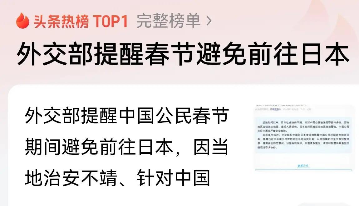 49条飞往日本航线全部关闭,外交部提醒:春节避免前往日本 26日,从中国三大航空公司国航、东航、南航,到多家区域航司如山航、厦航、上航,关于飞往日本航线的最新政策突然集中公布:所有适用条件的日本线客票,免退改政策延长,49条飞往日本航线全部关闭。这一消息在全国范围内瞬间刷屏,无数计划暑期游日的人们陷入观望和退订潮,也让外界再次关注起对日航班大规模暂停背后的深层原因。 从年初至今,中日之间围绕出入口禁令、外交提醒、民间情绪等事件不断升温。2月,外交部在官方通报中发出安全提示,明确建议中国公民春节期间尽量避免前往日本。原因并非空穴来风,日本社会治安状况自去年底起出现波动,大阪、东京等地时有报道涉及中国游客被袭击、财物受损,至少有四起面向在日华人的恶性案件引发广泛讨论。警方通报显示,中国公民在涉案中成为高频目标,引发了更高层级的安全关注。 与此同时,日本地震带风险再度升级,2024年元旦,能登半岛强烈地震引发地方海啸,造成200余人受伤,数十人失踪。3月下旬,气象厅连续发出多次地震预警,列入一级防灾响应。在极短时间内,富士山周边、新泻县、静冈县均报告了不同程度震感,官方数据披露,过去一个季度,日本主要城市群平均每十天就会经历体感地震一次。这让正在日本、计划赴日以及家属都绷紧了安全这根弦。 但对于大量有采购需求的消费者来说,原本“飞日本购物”的主力群体不约而同将目光转向国内市场。海南离岛免税政策持续加码,全岛免税销售已突破435亿人民币。海口美兰机场每日吞吐近50万人次,三亚、琼海等地早在今年黄金周期间因游客爆满而临时限流。全球最大单体免税店——三亚国际免税城实现全年无休,带动机场、大型商场、奢侈品专柜全线爆满。多项数据印证,中国游客完全可以在境内完成类似消费体验。 政策调整背后还有更深层的战略考量。国内相关出口管理局宣布,对一批“军民两用”敏感技术及零部件实施出口禁令,覆盖多项与国内核心产业链安全相关的领域。据日方媒体报道,这一举措直接影响到日本多家龙头企业包括半导体、化工与新材料方向。中方表示此举是基于国家安全立场作出的普遍安排。政策明朗、配套处理机制跟进,显示出事态具有高度组织协同。 针对突如其来的改签、退票潮,航司做出了一系列特殊应急安排。即日起,无论是已购机票还是计划购票用户,只要符合“政策所述时间范围与线路”,都可享受无损退款或免费更改航班权益。这一措施,被广泛解读为旨在最大程度减少普通乘客的经济损失。 综合各项权威报道可以看到,对日航班的大范围取消,是基于民众安全、自然灾害风险、国内产业升级三重现实原因,也是响应近日双方关系调整、防范不可测风险的全方位综合举措。举措落地快、影响广,但兼顾公开透明、为广大民众留足弹性空间。从实时退票安排、信息推送、针对性安全提醒等层面来看,这一波调整体现了实打实的民众关怀。 面对接下来的变化,出境计划建议以实际动态通告为准,提前关注目的地安全形势与航空政策。已经购票的旅客主动关注并及时调整行程安排。对消费人群而言,中国国内免税模式发展迅速,不少商品价格、服务体验甚至赶超海外,政策驱动下的消费升级提供了全新选择。 如今,政策快速变动已经成为常态。总有一些利好,是需要用理性分析和主动调整去抓住的。一切都在变,有准备、有信心,就能处变不惊。