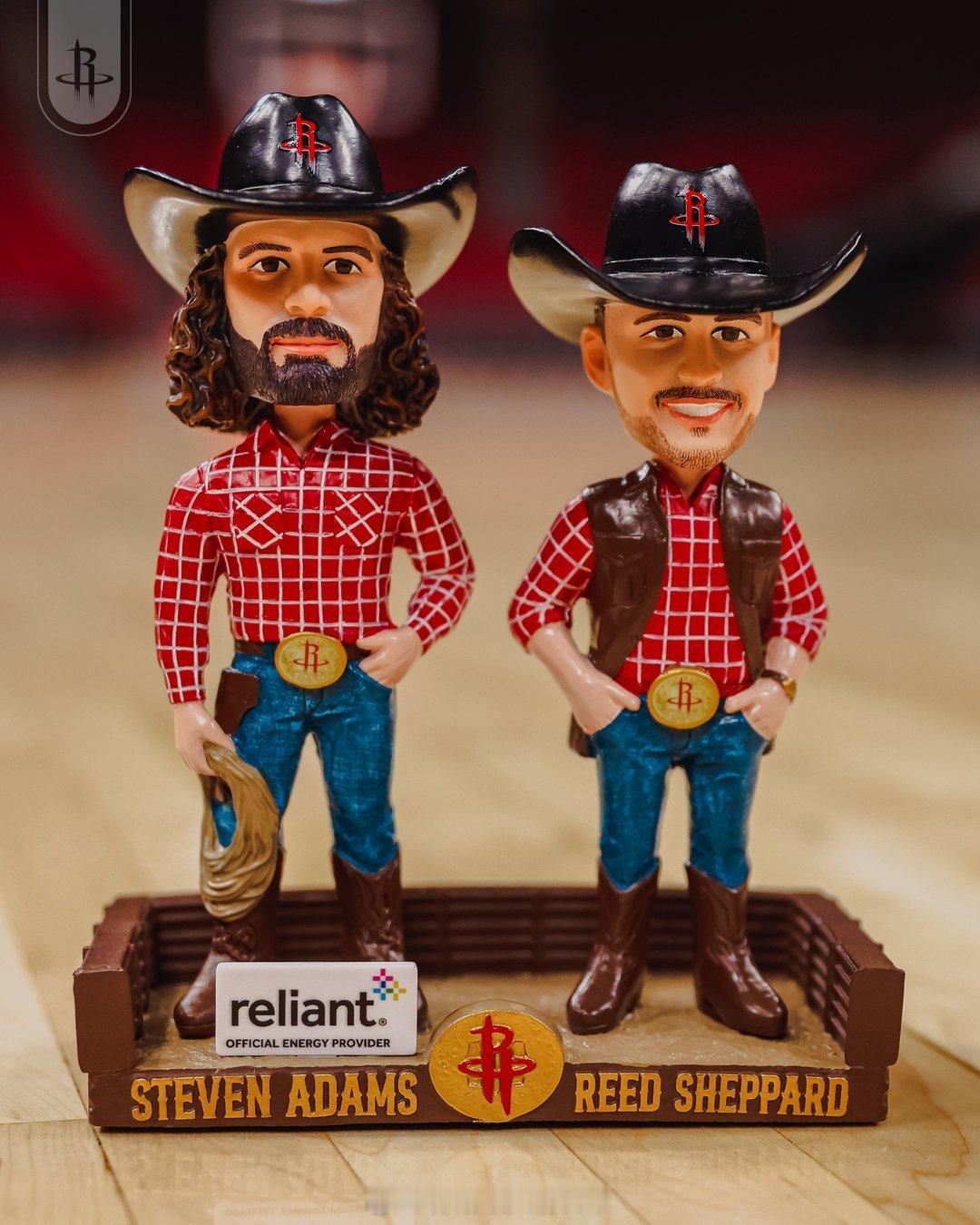 骑上马,牛仔竞技之夜! 🤠今晚比赛的前 3000 名球迷将获得由ReliantEnergy提供的独家亚当斯和谢泼德摇头娃娃!灰熊vs火箭休斯顿火箭新赛季篮不住