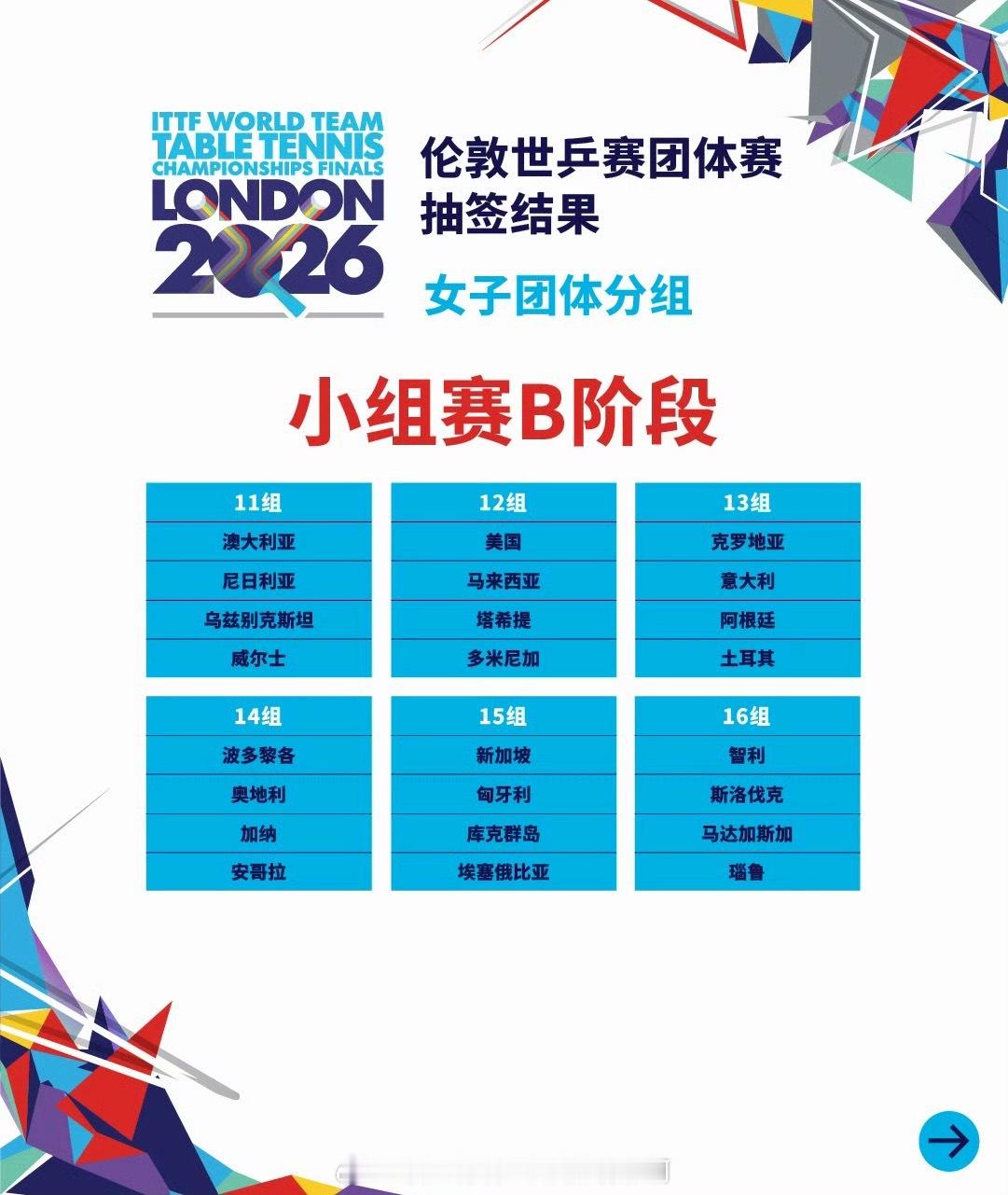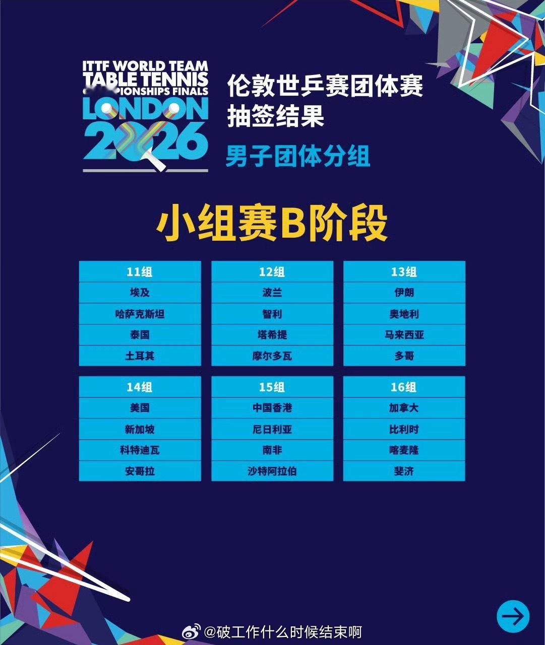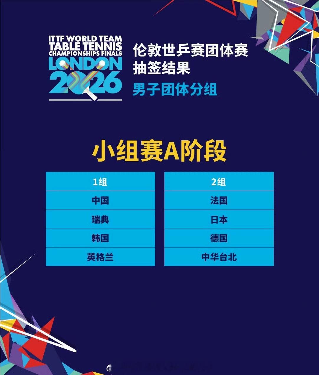 📢伦敦世乒赛分组抽签出炉🇨🇳国乒女团、🇰🇷韩国、中国台北、🇷🇴罗马尼亚同组🇨🇳国乒男团、🇸🇪瑞典、🇰🇷韩国、英格兰同组国乒男团与瑞典韩国英格兰同组