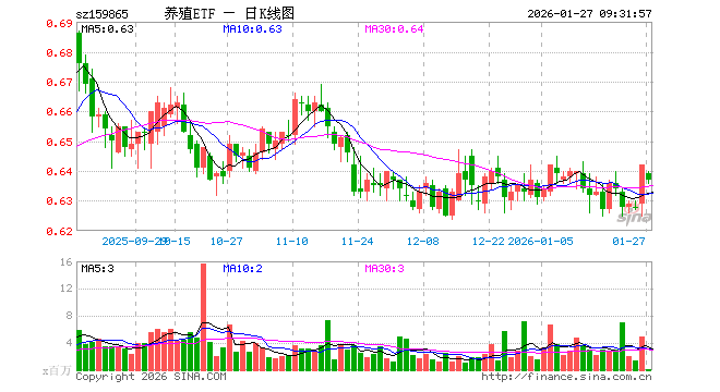 1月27日,养殖ETF(159865)开盘跌0.47%,报0.639元。养殖ETF(159865)重仓股方面,牧原股份开盘涨0.00%,海大集团跌0.12%,温氏股份跌0.19%,正邦科技跌0.59%,新希望跌0.45%,梅花生物涨0.00%,生物股份涨0.72%,大北农涨0.48%,圣农发展跌0.18%,立华股份跌0.25%。