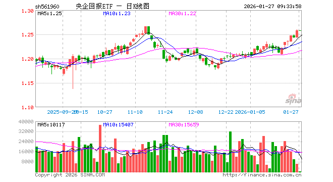 央企回报ETF(561960)业绩比较基准为中证国新央企股东回报指数收益率,管理人为招商基金管理有限公司,基金经理为房俊一,成立(2023-05-24)以来回报为28.70%,近一个月回报为4.11%。