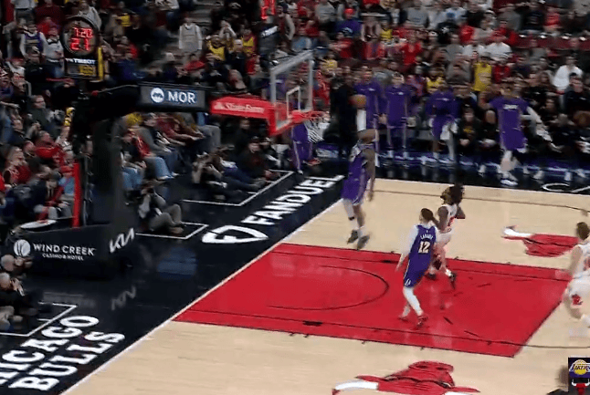 虎扑01月27日讯NBA常规赛,湖人对阵公牛的比赛正在进行中。