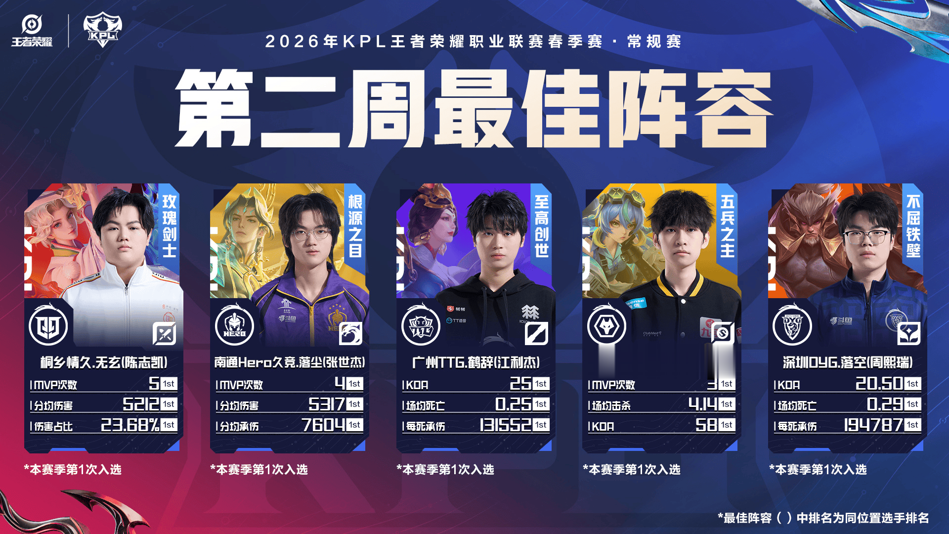 2026KPL春季赛[常规赛第二周最佳阵容]公布!