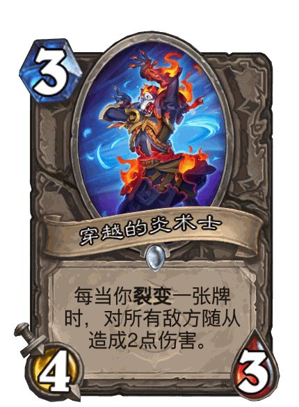 炉石传说 新版本应该是大灾变,首先穿越的炎术士,是未来穿越来的卡,新关键词裂变为