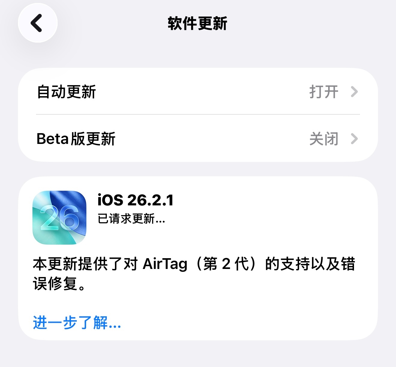 iOS 26.2.1来了支持AirTag二代
