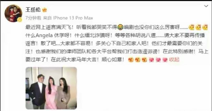 李湘前夫王岳伦发声:王诗龄休学、缅北方面的都是谣言,都是胡说八道!请大家不要再传