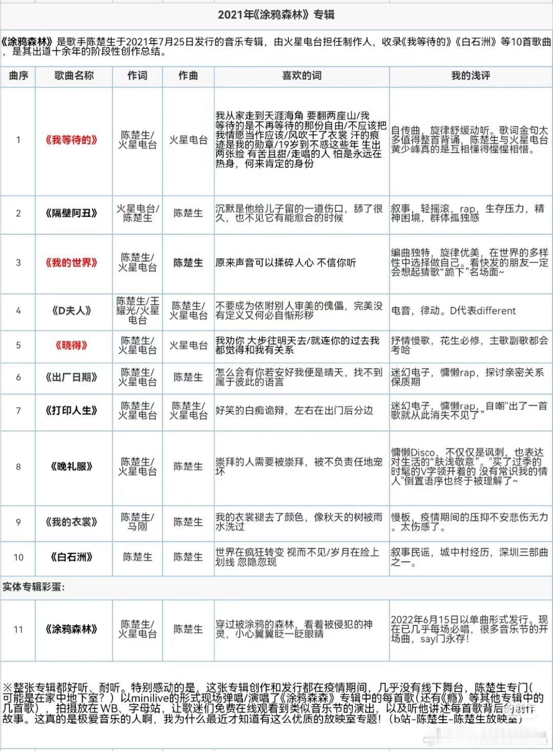 真不知道有些人怎么不百度一下就造谣,陈楚生和华谊音乐合约在2014年底到期不续,后面也是基本两年出一张专辑,大部分歌曲也是自己创作,以2021年发行的《涂鸦森林》为例,词曲基本都由陈楚生本人独立或者联合完成。