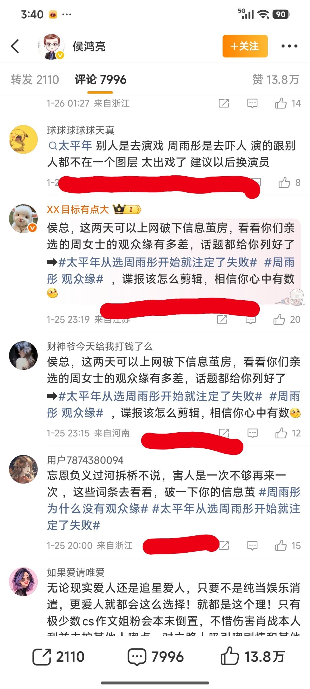 周雨彤工作室道歉周雨彤回复了章若楠粉丝周雨彤也被现任同事粉丝嫌弃了!疯狂在侯鸿亮评论区留言!