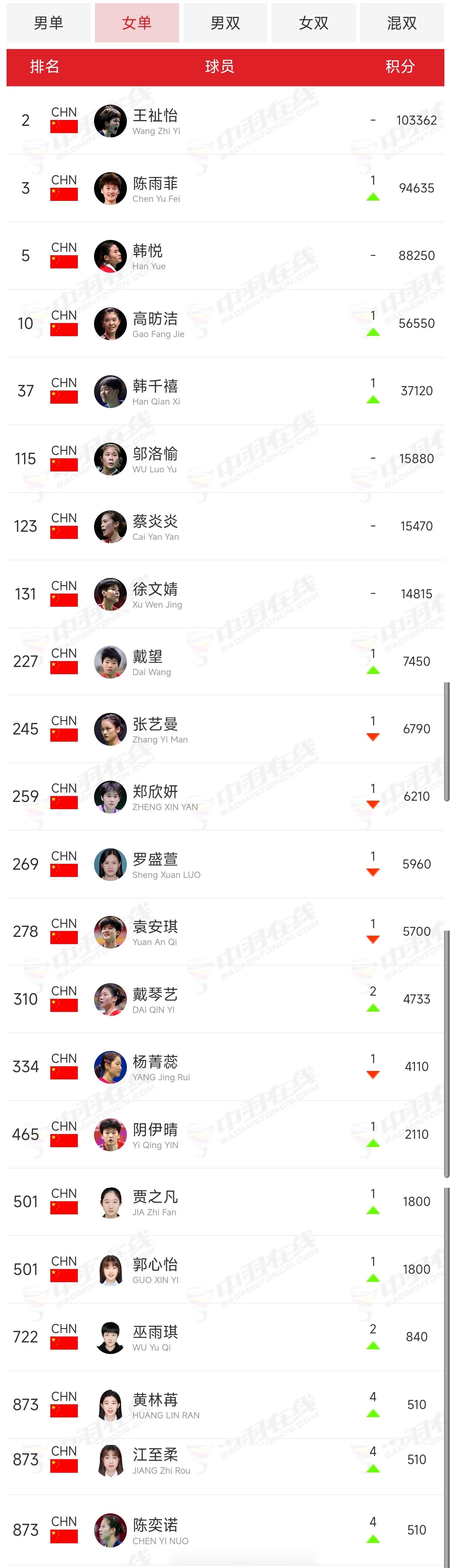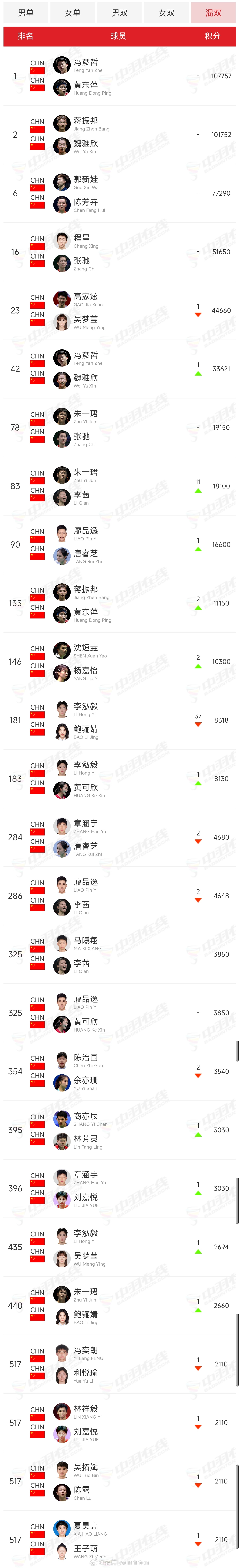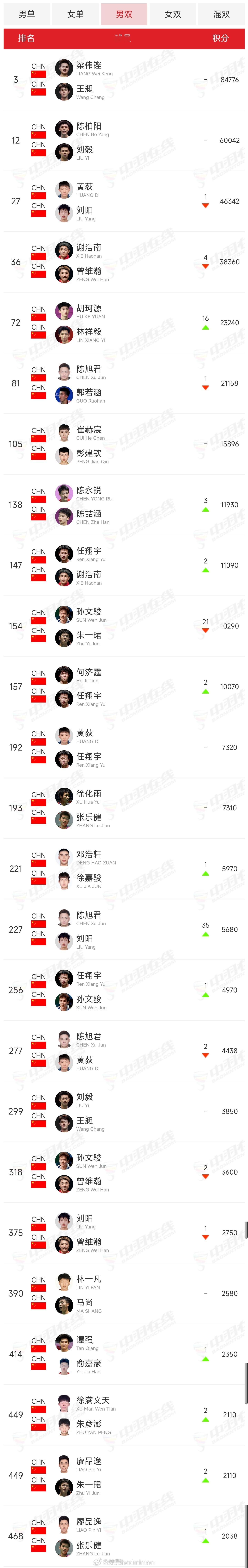 最新一期🇨🇳中国羽毛球队各单项世界排名羽毛球中国队世界排名