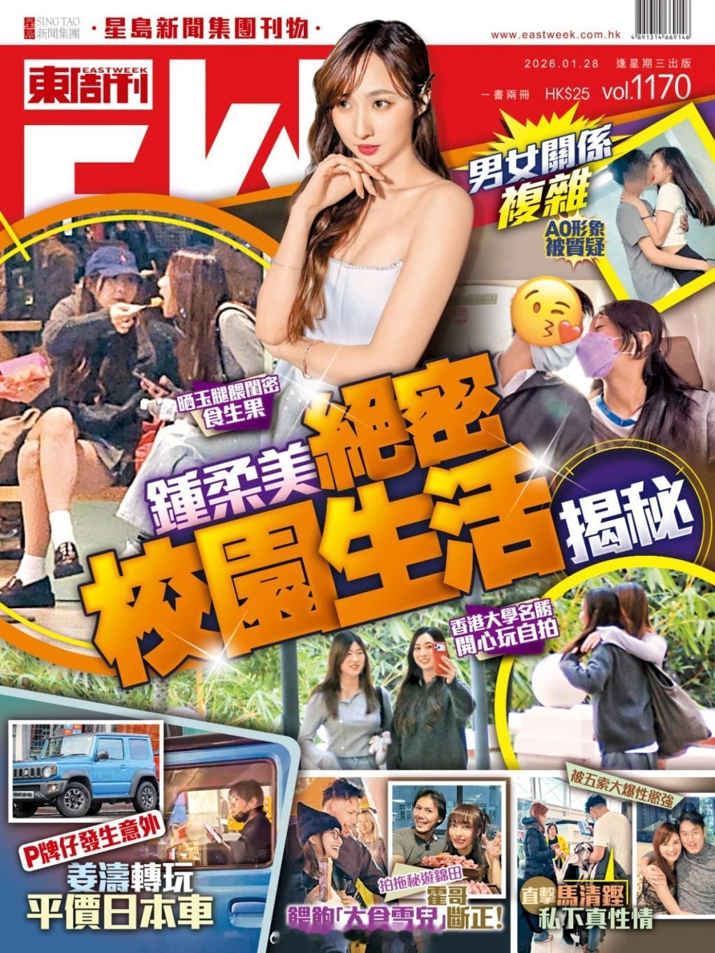 东周刊:钟柔美男女关系复杂 A0形象被质疑 绝密校园生活揭秘现年19岁、童星出道的“声梦小花”钟柔美(Yumi),一直声称感情状态是“A0”,成功建立纯情形象。不过,她在去年底却因错发跟TVB艺人刘展霆的啜面短片而泄“蜜”;然而,她死撑没有拍拖,并坚称“工作为主、学业为重”。接着,网上突然疯传Yumi于中学时期与4名“男友”又揽又锡的亲密合照,男女关系非常复杂。跟着,她更被网民疯狂狙击,纯情形象面临崩坏,甚至乎传出她的工作被飞起。去年尾,《东周刊》就捕获在香港大学就读新闻系的Yumi。现场所见,她悉心打扮,身穿短裙仔大晒玉腿,期间还开心得喂闺密食生果,又快乐地周围打卡,心情靓靓,尽情享受大学的校园生活。冧爆宅男 被捧为“A0女神”中菲混血儿、今年19岁的钟柔美(Yumi),小时候已经跟随薛家燕四出表演,亦曾参演剧集,变身童星。2021年,她参加TVB的歌唱选秀节目《声梦传奇》第一季,并凭劲歌热舞夺得季军,崭露头角。翌年,她正式出道成为歌手。之前,炎明熹(Gigi)由于不续约,被掟入雪柜,故TVB便将准备投放在Gigi身上的资源,给予听教听话的Yumi,既安排她唱歌、拍剧,还铺路返回内地发展,开行turbo力捧。入行以来,Yumi一直坚称自己的感情状况是零拍拖经验的“A0”。前年,被问及感情事时,她还煞有介事的说︰“我不是好钟意主动追男仔,唔钟意这种感觉。”同时,她自爆不能接受与异性在幕前有亲密的举动:“如果要拍揽揽抱抱或者锡锡场面,我都唔得。”纯情形象冧爆一众宅男,更捧她为“A0女神”。不过,去年底,Yumi因错手放了一段短片,而引起轩然大波。片中,她被绯闻男友刘展霆从后揽实兼啜面,而她也一脸受落。随即“A0”身份备受质疑,Yumi 马上解画,表示在圣诞派对玩“真心话大冒险”,她由于输了被罚上载短片,加上自己鬼妹仔性格,兼且与刘展霆是好朋友,总言之一切仅是玩游戏而已。Yumi再次强调自己从未拍过拖:“我觉得拍拖这回事在这个时代冇所谓,我都算长大了,拍拖是人生经历,但我未试过,我是工作为主、学业为重。”接着,Yumi又在社交平台补发一张在派对上,她被中性打扮的造型师Jansco Wan啜面的相,画面跟她与刘展霆的相同,以及派对上的合照,力证当晚多人参与同一游戏。“蜜”照流出 “A0”形象备受质疑这边厢,Yumi使尽浑身解数保持“A0”的纯情形象;但那边厢,她的“旧同学”却在网上大爆她至少拍过4次拖,更疯传多张她中学时期与“男友”们的合照作铁证,以及供出他们的英文名,并声称:“呢啲名,佢一听到,冇得唔认囉。”相片中的Yumi,样子幼嫰,看似只有13岁,除了与四眼师兄亲密地依偎坐小轮拍拖之外,又和第二名“男友”头贴头影甜蜜照。此外,Yumi还跟同样身穿校服的第三名“男友”,在巴士上隔着口罩鼻贴鼻烟韌;而最吸睛的是,她与第四名“男友”在后楼梯揽实互啜,男女关系复杂。“A0”形象备受质疑之余,Yumi的学霸身份也被指名不符实。中学毕业试,考获全班第一佳绩的她,情不自禁地上载拿奖状的片段到社交平台,于是获得外界称赞她是学霸。不过,该“旧同学”继续爆料︰“之前又话全班第一,其实係因为她係非华语学生,嗰班全班都係外国人,计分方法又唔同,所以先係全班第一。”事实上,前年考DSE的Yumi,自爆发榜成绩不满意,于是选读香港大学专业进修学院的副学士课程。不过,她最终凭着努力不懈,一年后成功升读香港大学的新闻系。喂闺密食水果 心情好游校园Yumi负面新闻接蹱而来,有网民以“不如讲吓你遇过最无礼貌嘅艺人嘅经历”为题出帖,她也榜上有名。此外,她一在社交平台出片,便被疯狂狙击给予负评;以及不少粉丝也因此过档,就连工作亦出事。除夕在中山的商场演出,她和詹天文及姚焯菲都有份,但事后大会却在宣传片上删走她;接着,她又缺席《万千星辉颁奖礼》;另外,去年11月举行的《保单捐赠计划》,海报上原本印上她为活动大使,因大埔火灾,该活动延期至今年1月,但大使之位却变成吴若希。幸好,Yumi于2月还有地产公司的周年晚宴表演,暂时没有变更。去年尾,《东周刊》在香港大学发现Yumi的芳踪。当天,戴上cap帽、身穿短裙仔的她,孭着一个大袋,现身港大校园。现场所见,Yumi跟一名闺密先到咖啡室买饮品;接着,她突然从袋中拎出一个食物盒,并喂对方品尝水果,关系十分亲密。跟着,她们边食边倾,兼倾到鸡啄唔断;期间Yumi更不经意地大晒白滑玉腿,非常吸睛!之后,两人转去游览校园,并在港大的名胜前开心自拍,玩到尽兴之后,她们才结伴去上课。相信Yumi一定深明,勤奋学习,成绩表不要“0A”,将来失去明星光环,还有学识与文凭。