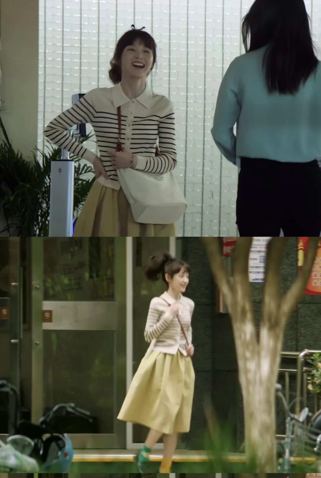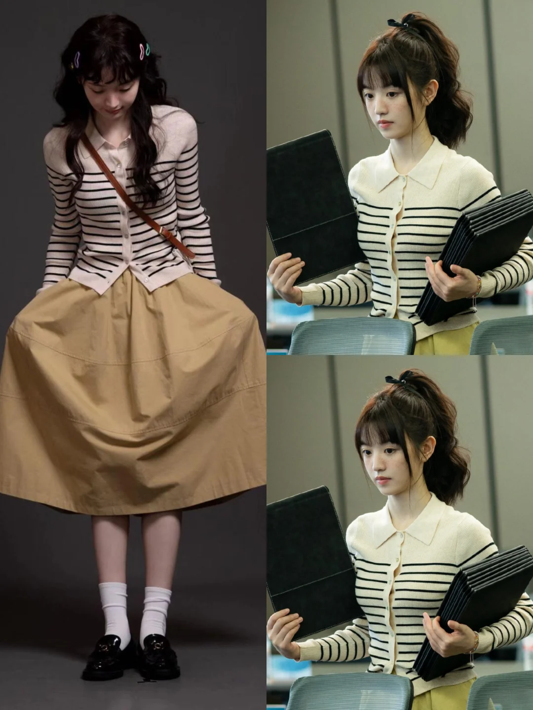 是谁又在看半熟男女,依旧被田曦薇演的何知南吸引,从一个在感情中摇摆不定的“恋爱脑”成长为认识到自我价值的独立女性,何知南请幸福好不好!剧中何知南的穿搭完全就是打工人范本,条纹polo衫搭配百褶半身裙与乐福鞋,简约通勤又气质! 图片cr:田曦薇