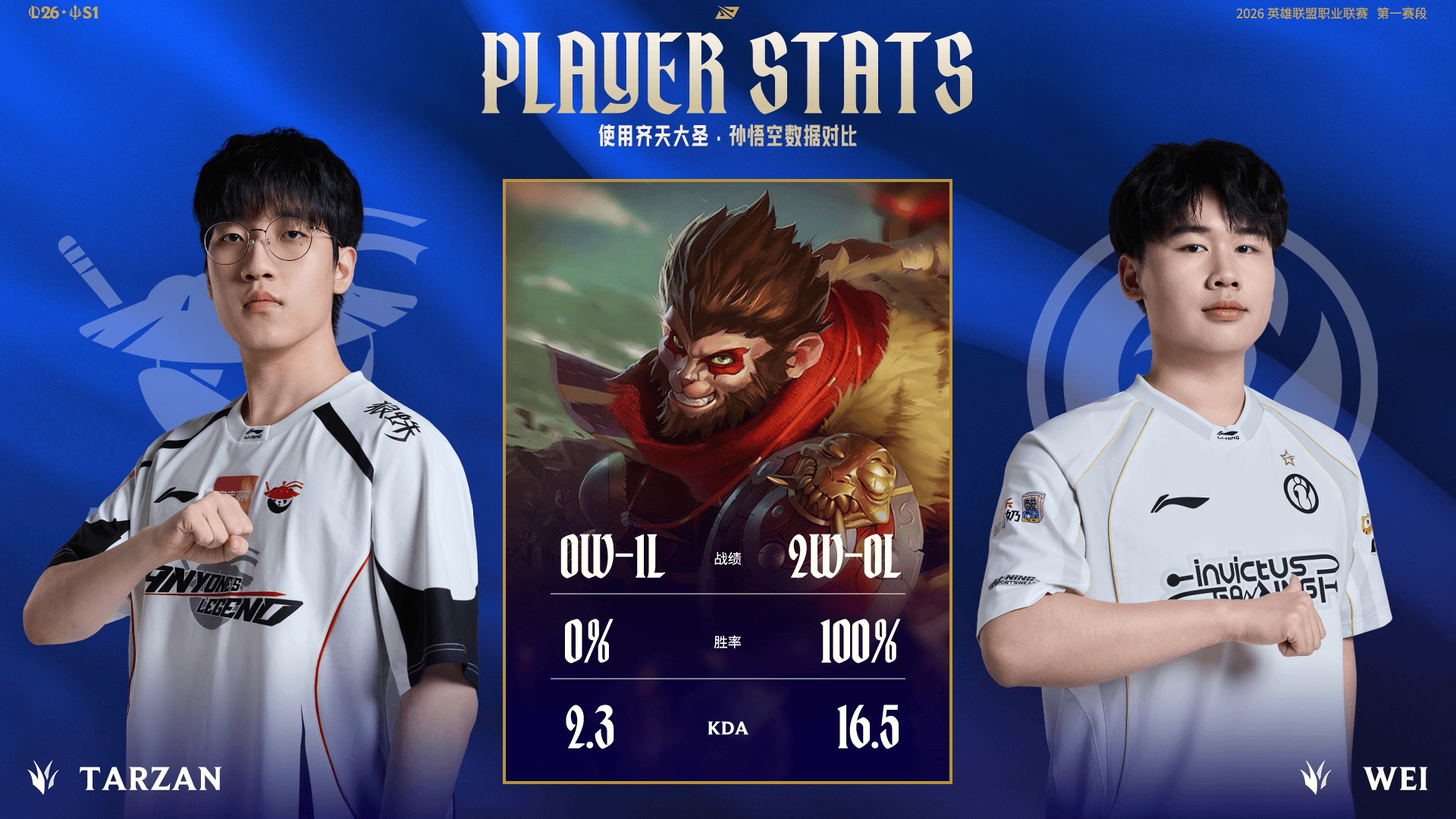 Tarzan与Wei使用赵信、孙悟空数据对比如下;
