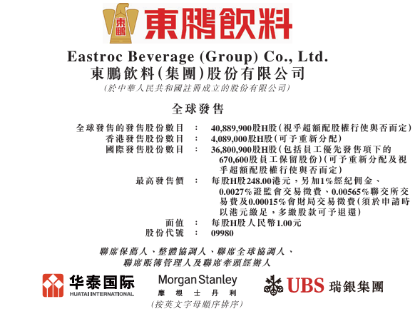 1月26日,东鹏饮料(集团)股份有限公司(以下简称“东鹏饮料”)在港交所正式发布H股全球发售公告,预计将于2月3日开始上市交易,股票代码为09980。