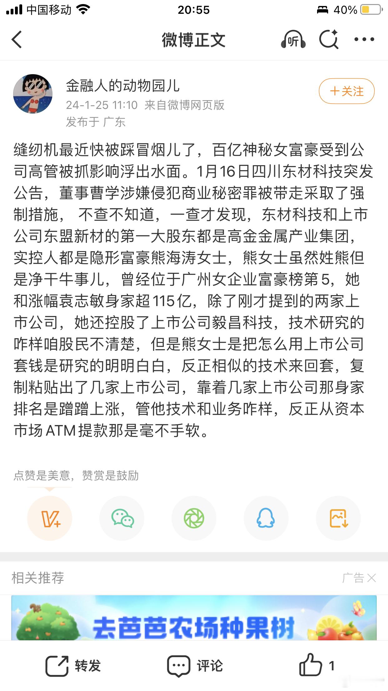 熊海涛夫人被留置,四川今天怎么了//东材科技: 公司实际控制人、副董事长熊海涛被四川省监察委员会采取留置措施,公司称目前生产经营正常。