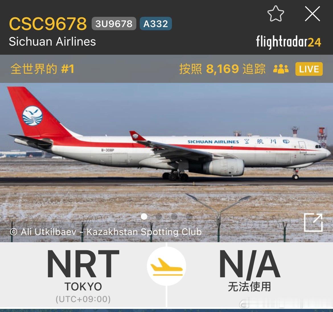 吃完饭了关注一件大事。目前世界上飞友关注最多是一架从东京成田起飞的四川航空空中客车A330-200货机。这架飞机的目的地是四川成都。那么为什么那么多人关注呢?因为飞机上载有日本最后的两只大熊猫晓晓和蕾蕾,它们即将启程回国。今天白天已经有大量日本民众聚集在东京上野动物园周围送别这两只大熊猫。2020年我曾经去过上野动物园,但可惜由于大熊猫馆实在太火热了,没有能够看到这两个大宝贝儿。日本最后2只大熊猫今天回国 北京