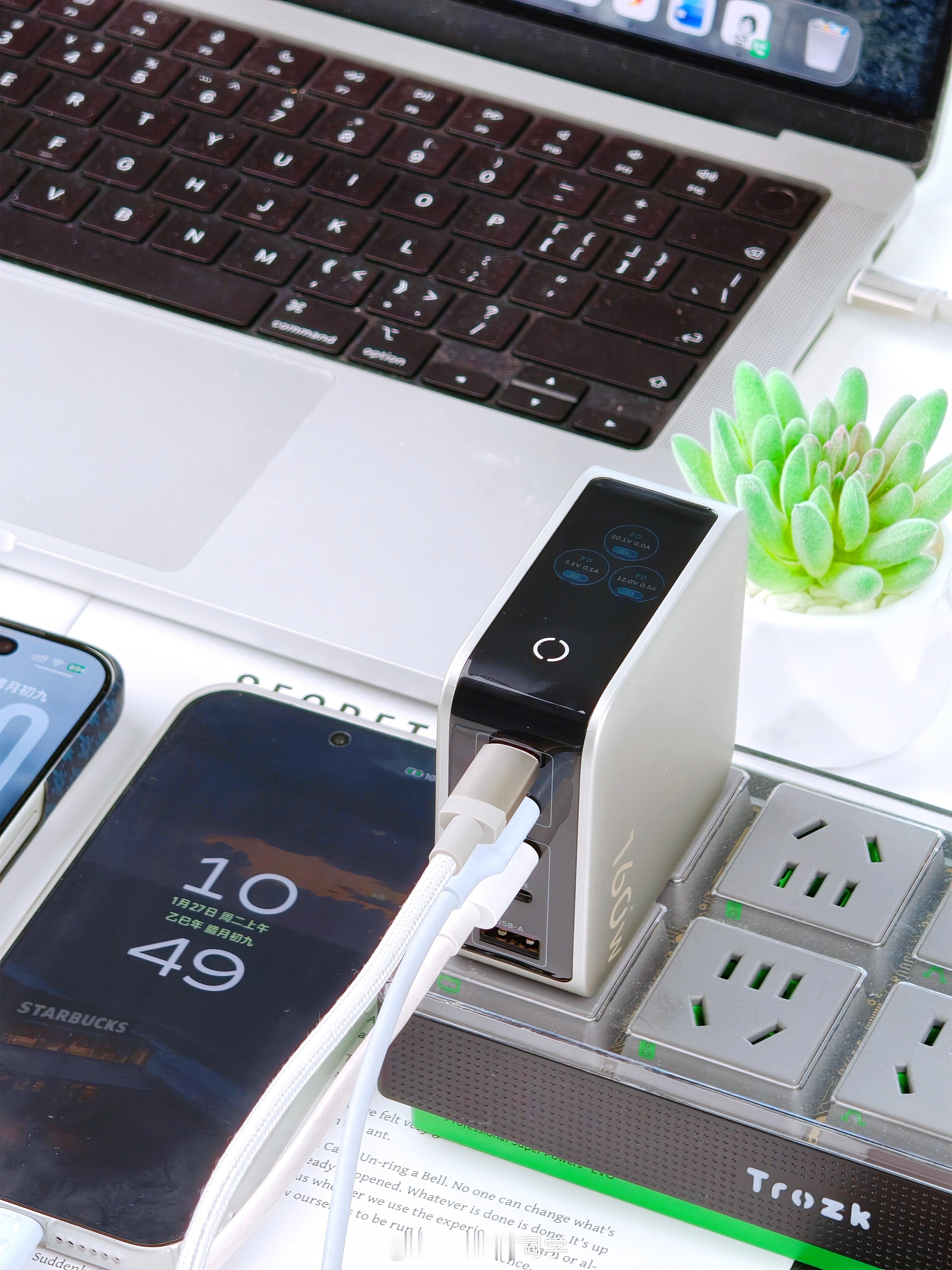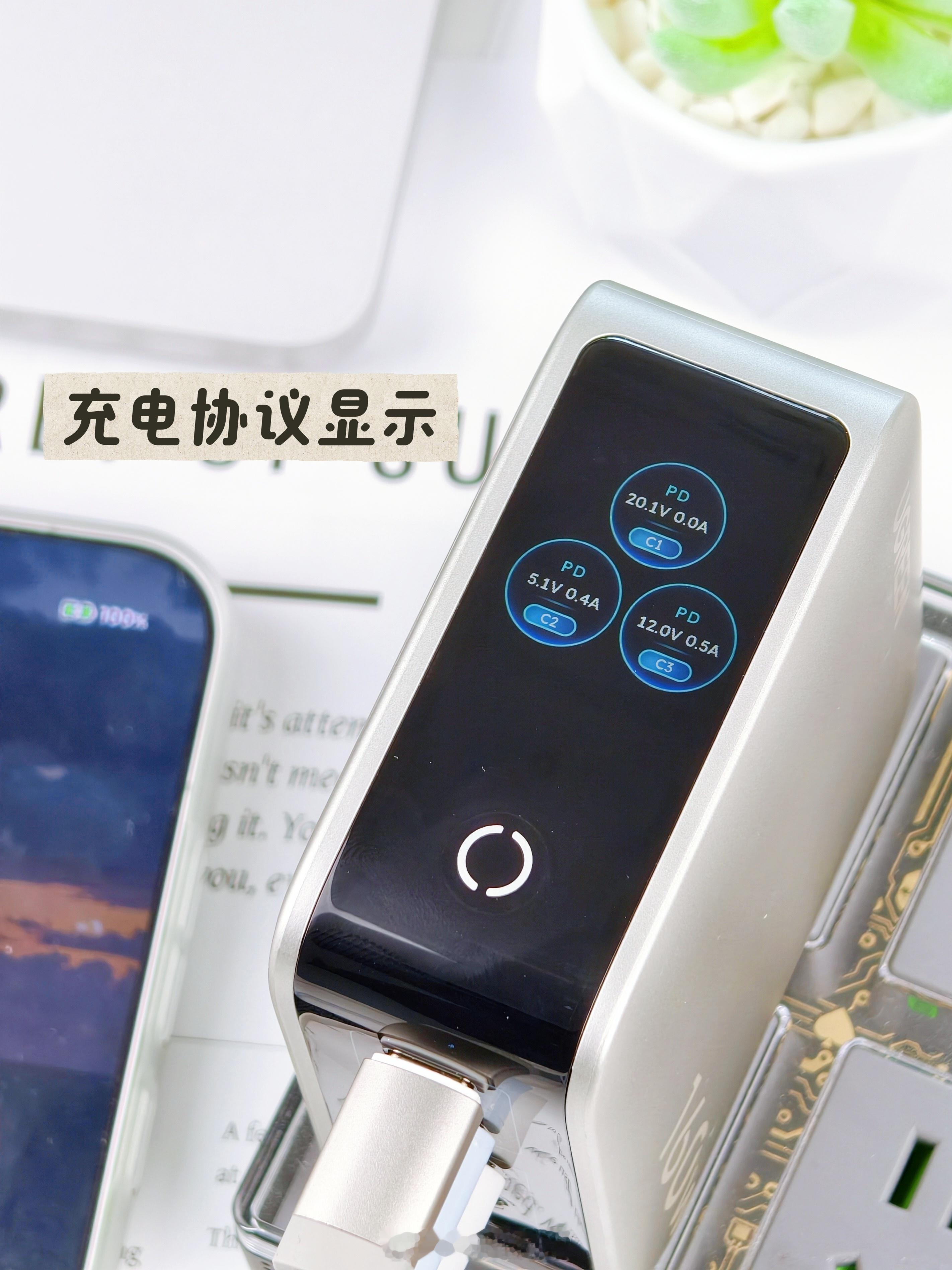临近过年数码配件的新品也挺多,最近在用绿联速显充160W,又是一个很有情绪价值的产品一共5个口,4C1A,我手头所有的设备都能充上电,正好覆盖我的全家桶,而且C1/C2口单口输出就能达到最高140W,充电速度无需多言和很多充电头一样,他也有一个小屏幕,能够实时显示每个充电口的充电功率和所用的协议,还可以显示总充电功率,充电速度一目了然,而且还有一个隐藏小彩蛋,连续按12下会有惊喜小表情~更值得一提的是这个充电头支持PD/QC/SCP/FCP/AFC等主流的充电协议,几乎可以满足所有设备的快充,从手机到电脑都可以智能识别,并匹配最快的充电速度多接口充电意味着容易过热,绿联速显充160W的智能温控系统,可以自适应调节温度,充的安心才是真好用
