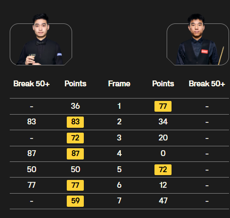全场比赛,斯佳辉打出4杆50+(83、87、50、77),范争一没有打出一杆50+。