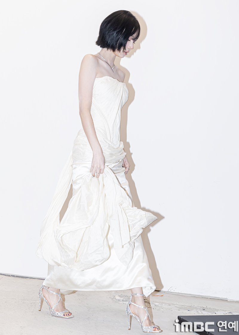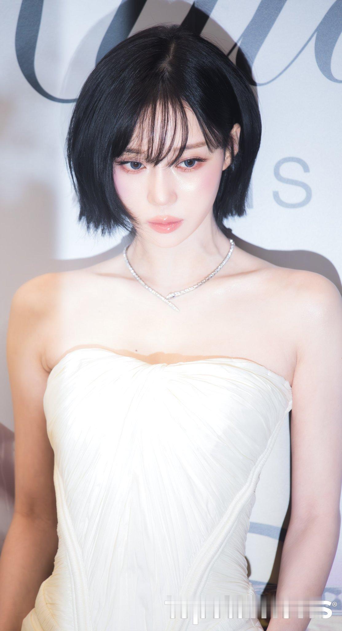 金玟庭 x Kilian ParisWinter一袭象牙白褶皱束腰抹胸长裙出席K