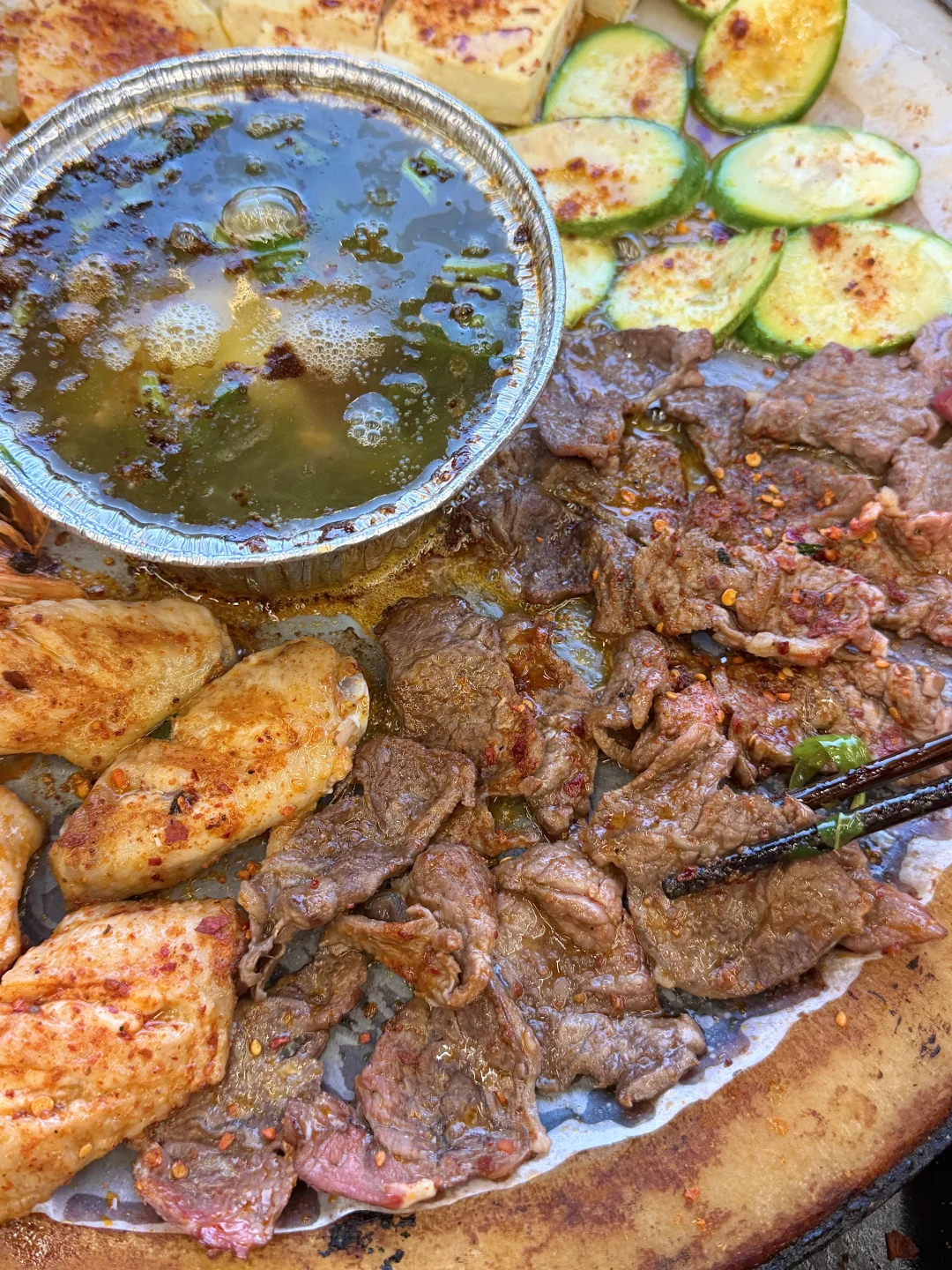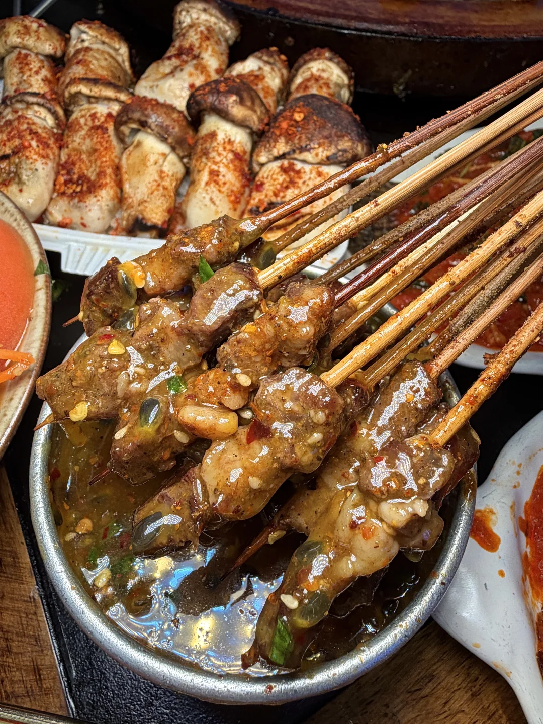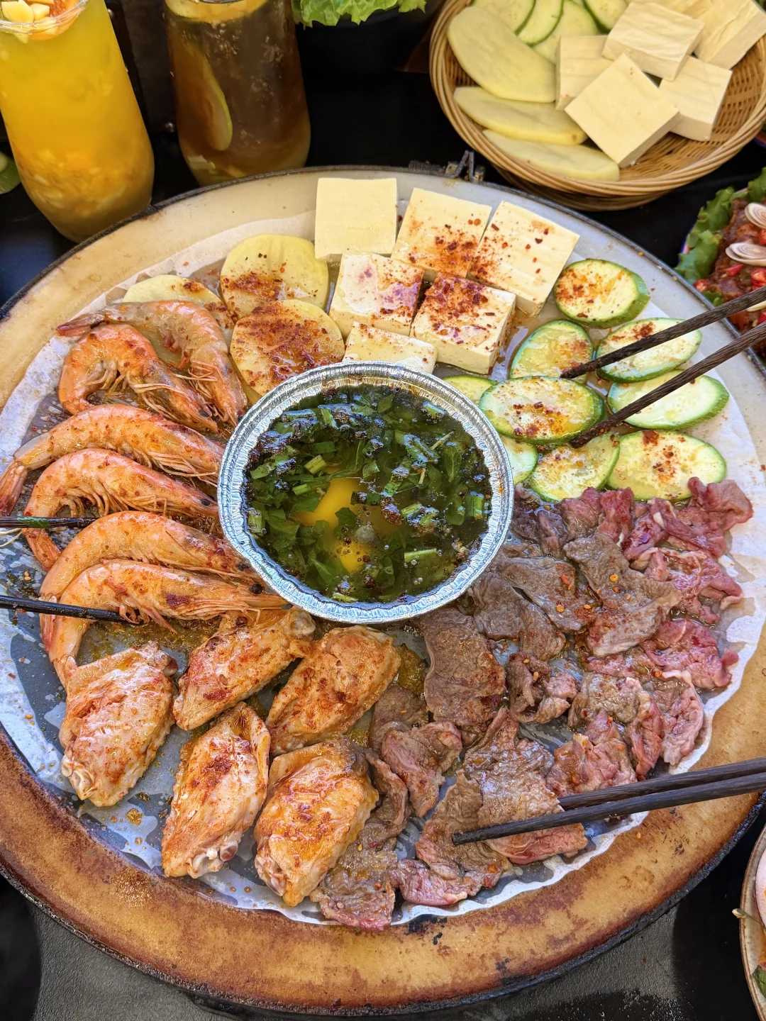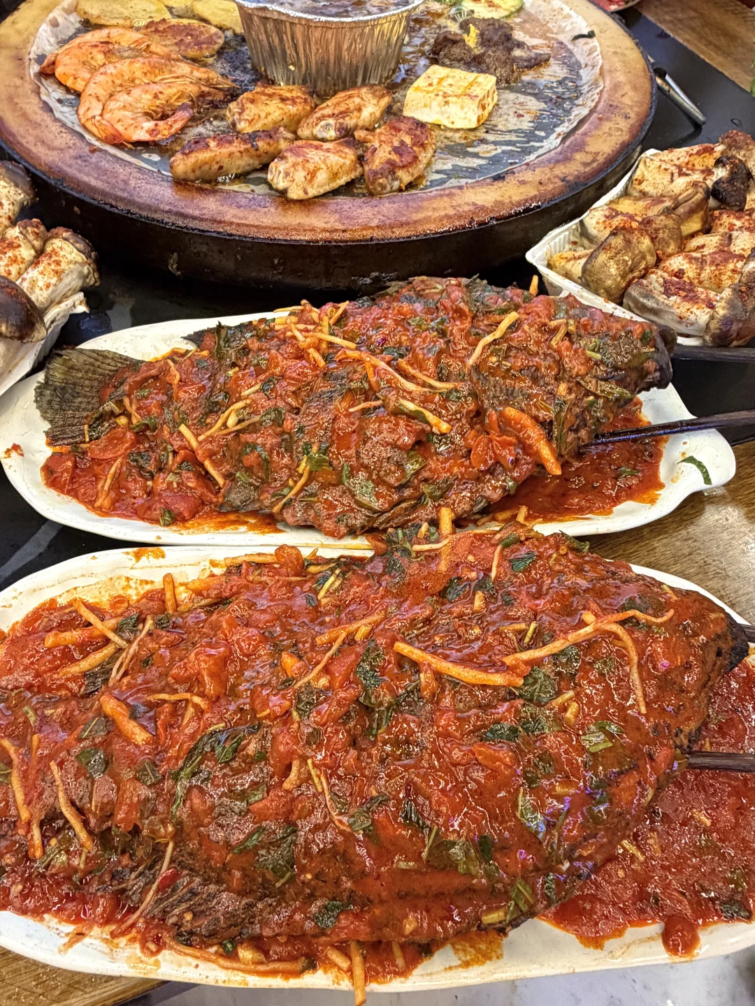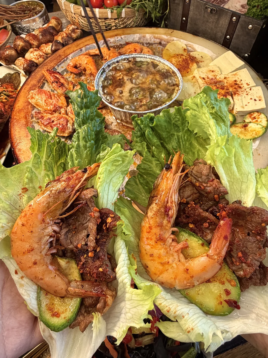 人均才不到50!不仅环境氛围感拉满,主打的白族石板烧肉味道也没话说!!有不同的鲜切肉份量给的好足!!吊龙、肥牛、黄喉……还有红烧鱼都好好吃啊!百香裹汁小肉串……我们都抢着吃,蘸百香果酱好开胃!还有饭后甜点玫瑰花烤满头……我们4个人吃完了还打包走了两份!尊嘟好爱!!