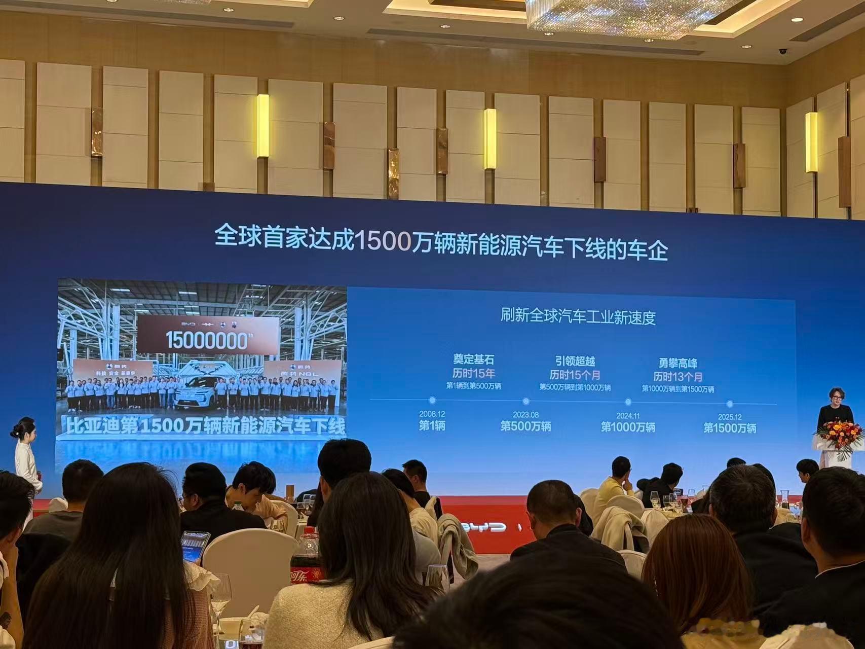参加一年一度比亚迪家宴,2025的比亚迪交出完美答卷,460万台,再获“三冠王”,期待2026更进一步。没在迪家活动中过奖,今晚依然保持着这个纪录。比亚迪