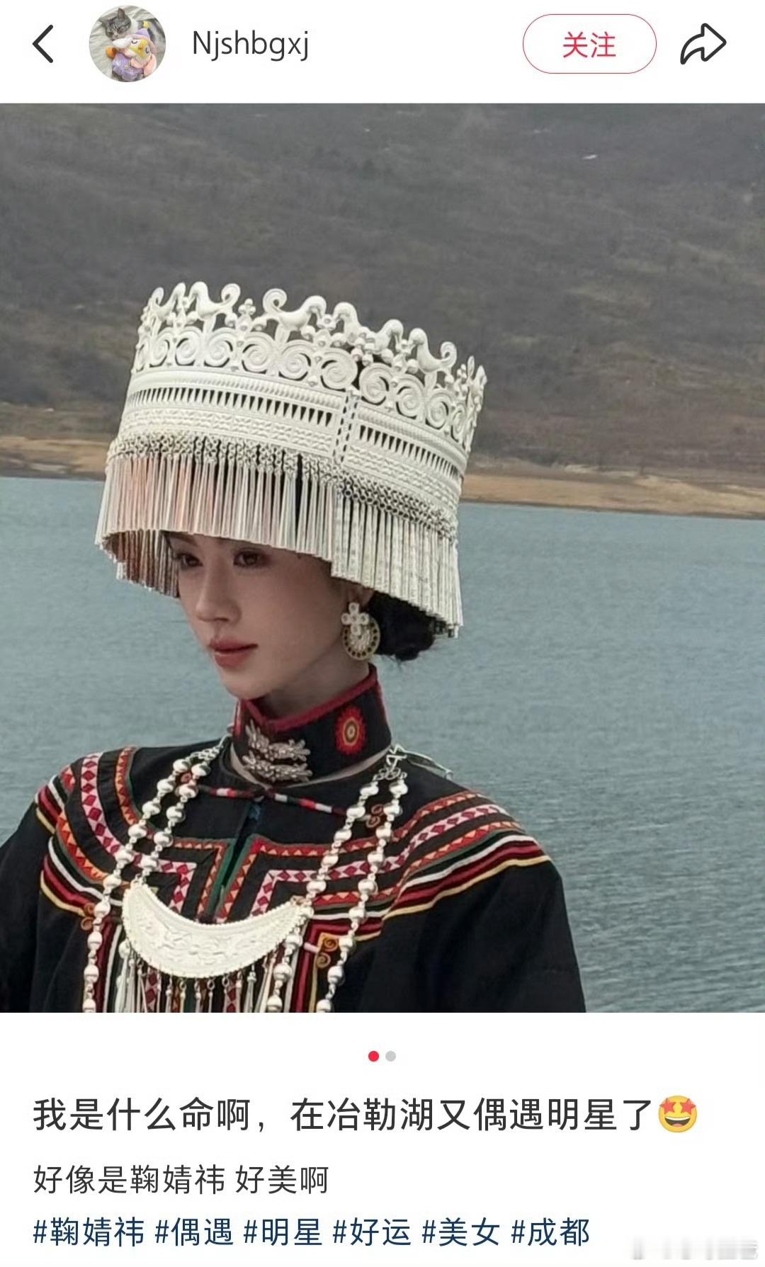 有网友在冶勒湖偶遇鞠婧祎这个生图状态美呆了这是在拍什么物料吗冶勒湖偶遇鞠婧祎