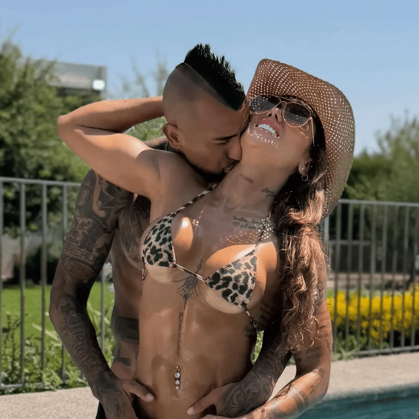报道称,比达尔的女友名叫SoniaIsaza,现年37岁,是哥伦比亚健身网红,在社交媒体上拥有超360万粉丝。此次她身着超性感比基尼,与38岁的球星男友比达尔一起,在男友的家乡智利畅游泳池。