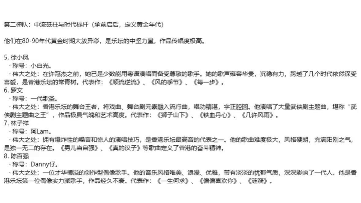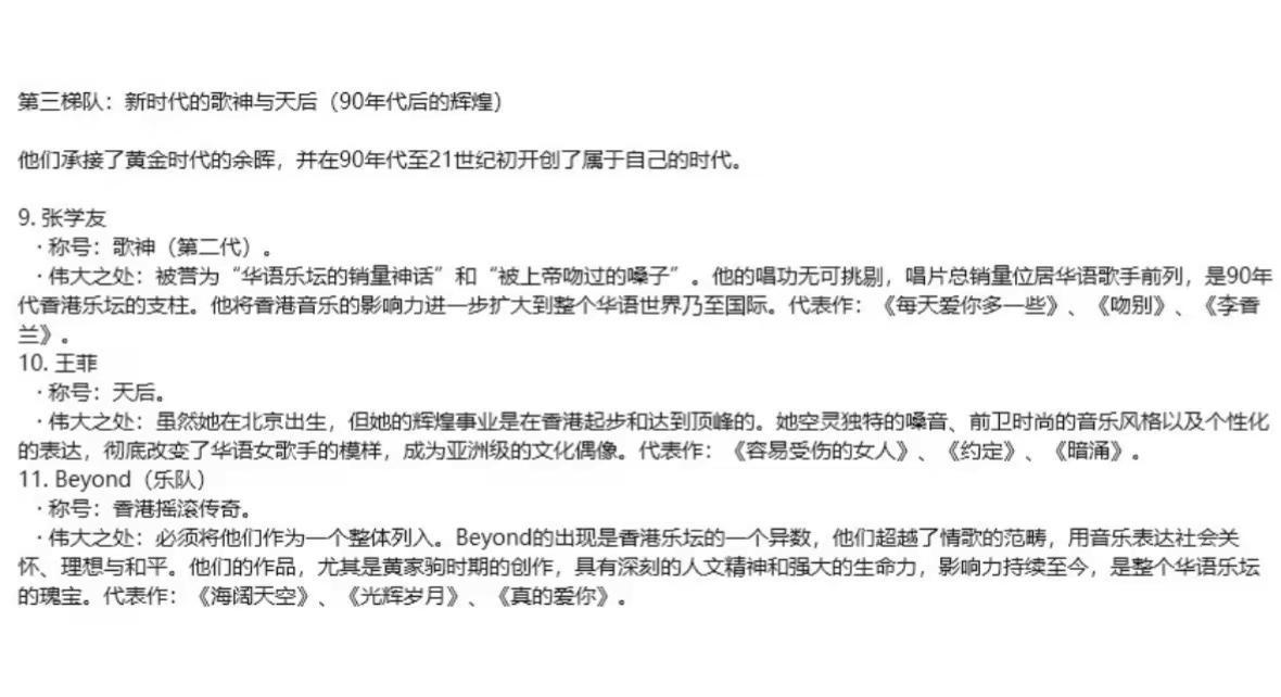 Deepseek粤语歌坛十大传奇歌手排名,却找不到陈奕迅