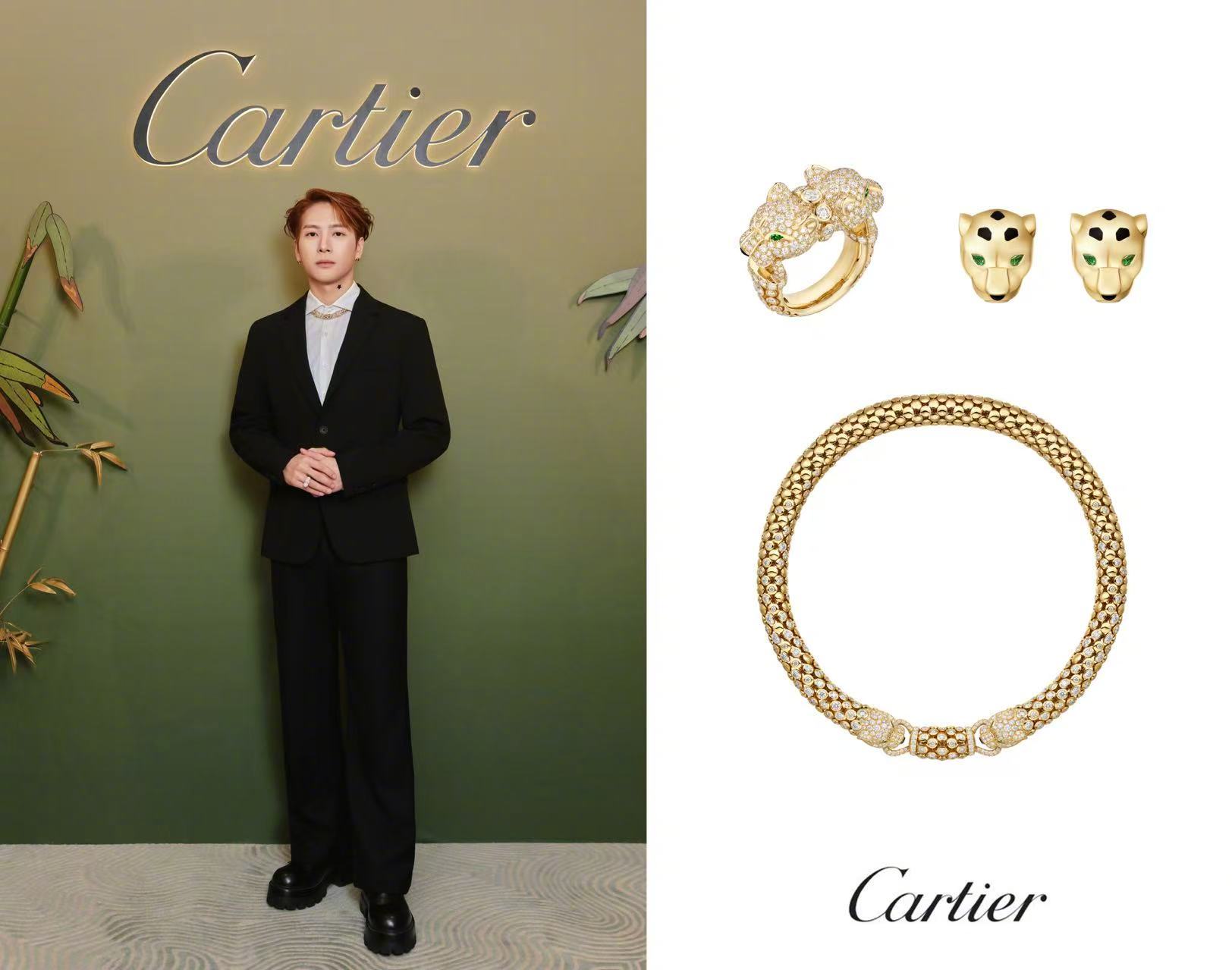 卡地亚品牌大使、音乐唱作人王嘉尔现身出席成都太古里精品店卡地亚Flora & Fauna主题高级珠宝私人鉴赏活动,身穿黑色西装,佩戴的是PANTHÈRE DE CARTIER系列项链、戒指、耳环。米拉服饰解析珠宝与时计之美