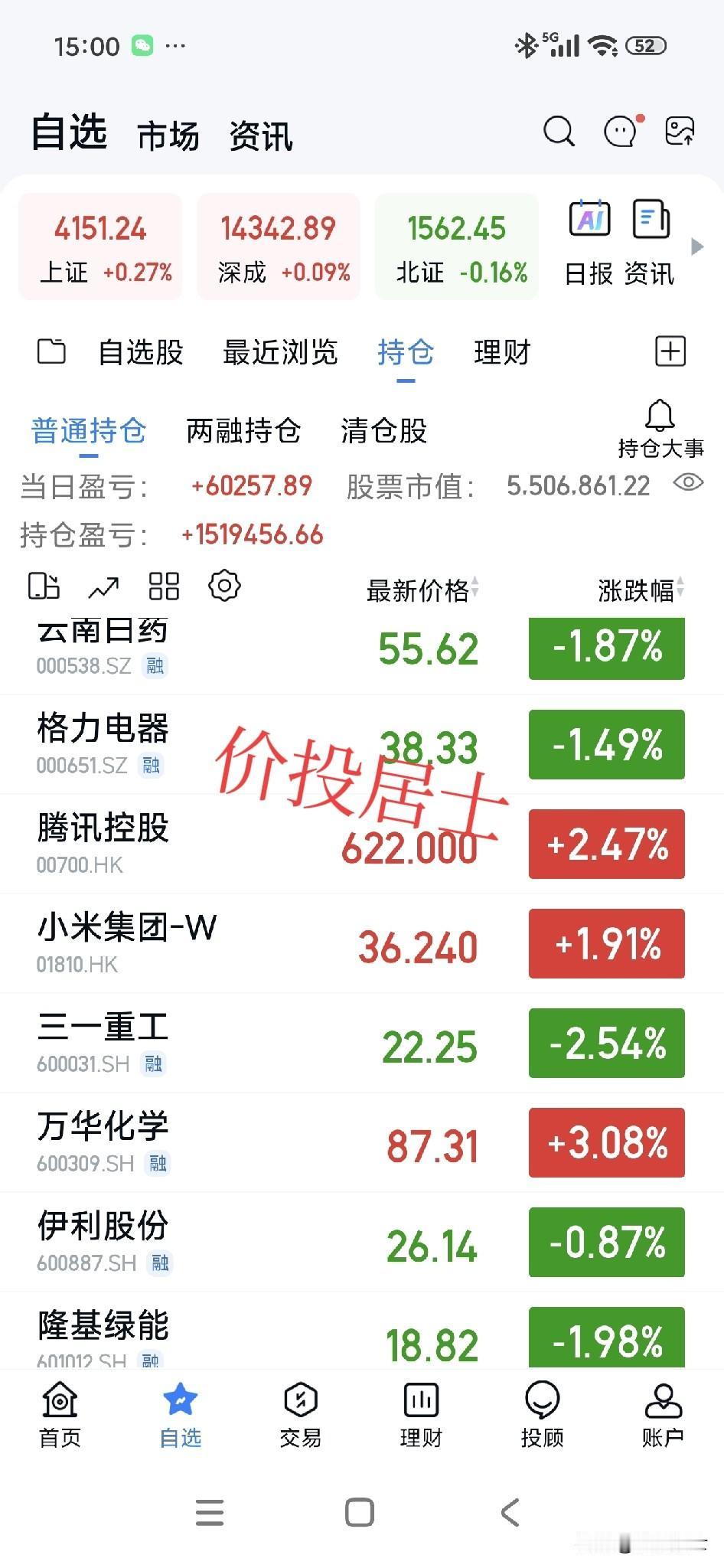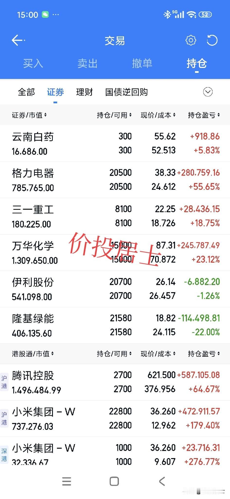 这会A股收盘了!最近几天大盘的波动性都非常大,尤其体现在个股的大起大落上,往往牛市中期多空双方的分歧是最大的!牛市初期看多的少,牛市末期看空的少,恰恰牛市中期看多的和看空的容易形成分歧!谁也不服谁[笑哭] 个人呢是属于短期不看空也不看多,长期看多中国股市核心资产的一类,价值投资其实算是属于长期看多的一派,本质上我们不参与短期多空的讨论。只是我既然天天写头条,自然有些时候会涉及一些基础逻辑,大的方向,某年度的目标点位等等,但是这些只供大家参考,不作为个人与大家的投资依据! 今天格力和伊利,继续破短期的新低,好公司➕低估值➕高分红偏偏连续调整,所以市场极端起来,往往不按常理出牌[笑哭] 此外一些朋友不要问我交易相关的问题,俗话说会买的是徒弟,会卖的是师父,那么我就属于不会买也不会卖的那一类[笑哭]我傻子一个,仅此而已[祈祷]