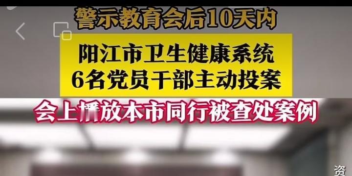 立竿见影啊!240人看完片子后,6人主动投案,也就是说:每40个“白大褂”里,就有一个“坐不住”的。(详见附图)! 近日,广东阳江市卫健系统的会议室最近有点特别——警示教育片《医戒》播完,现场240名医疗系统干部中,竟有6人坐不住了,经过激烈的思想斗争,几天之内,选择了主动投案。 这部片子怕不是医疗界的“照妖镜”? 据说里面详实记录了药品回扣、器械采购黑幕、过度医疗等典型案例,连红包怎么塞、账本怎么记都拍得清清楚楚。有参会者私下说:“片子里某个收受贿赂的细节,跟我上周经历的一模一样,看得后背发凉。” 看来警示教育这剂“猛药”,剂量到位了确实能让某些人“瞬间清醒”。 这场面让人想起手术室的无影灯——平时照的是患者,这次照的是操刀者自己。医疗腐败就像血管里的斑块,平时看不见,一旦被影像技术清晰呈现,连本人都吓一跳。 有老医生感慨:现在当医生真是“高危职业”,不仅要防病毒、防医闹,还得防自己心里长草。白衣天使的翅膀一旦沾上铜锈,飞不高是小事,坠下来可是要砸穿地板的。 值得玩味的是,网友对此评价两极:有人拍手称快:“早该整治了,我上次做个阑尾炎手术,账单像毕业论文那么长”; 也有人担忧:“会不会让医生更不敢放手治病?” 更有神评论:“建议这片子全国医院轮播,就当是行业‘预防接种’。” 你看病时遇到过哪些医疗乱象?理想的医患关系应该是怎样的?欢迎评论区聊聊。医疗反腐 医疗界反腐 医疗卫生反腐 严查医疗反腐 广东医疗反腐 医疗警示