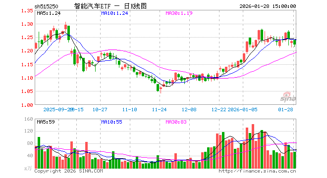 1月28日智能汽车ETF(515250)份额减少1300.00万份,最新份额6.43亿份,最新规模7.87亿元