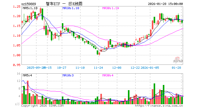 1月28日智能汽车ETF(159889)份额减少100.00万份,最新份额3940.08万份,最新规模4591.77万元