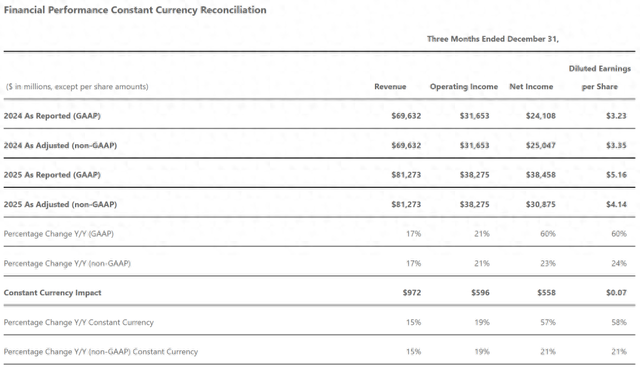 财报还显示,在该财季,对OpenAI的投资使微软的净利润增加76亿美元、EPS提升1.02美元;而在2025财年第二季度,该投资导致公司净利润减少9.39亿美元、EPS下降0.12美元。