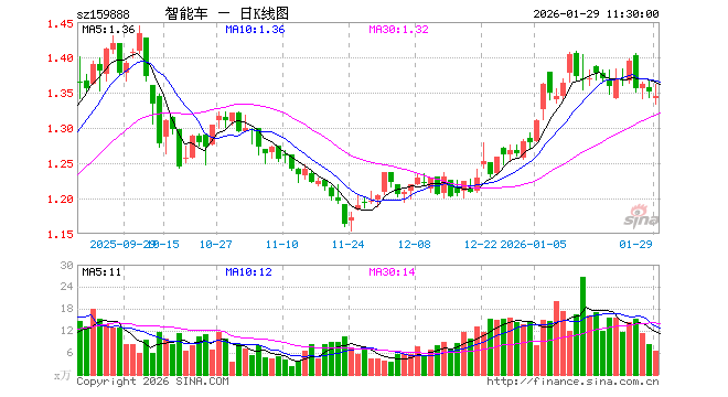 1月29日,截止午间收盘,智能汽车ETF华夏(159888)跌0.44%,报1.344元,成交额901.12万元。智能汽车ETF华夏(159888)重仓股方面,拓普集团截止午盘跌1.97%,豪威集团跌3.44%,科大讯飞涨10.00%,比亚迪跌1.61%,长安汽车跌1.15%,赛力斯跌1.48%,芯原股份跌1.11%,立讯精密跌2.20%,北京君正跌6.59%,德赛西威跌1.38%。
