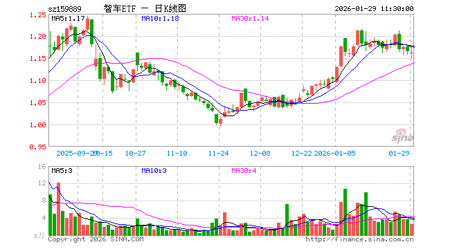 1月29日,截止午间收盘,智能汽车ETF(159889)跌0.34%,报1.161元,成交额290.76万元。智能汽车ETF(159889)重仓股方面,拓普集团截止午盘跌1.97%,豪威集团跌3.44%,科大讯飞涨10.00%,比亚迪跌1.61%,长安汽车跌1.15%,赛力斯跌1.48%,芯原股份跌1.11%,立讯精密跌2.20%,北京君正跌6.59%,德赛西威跌1.38%。
