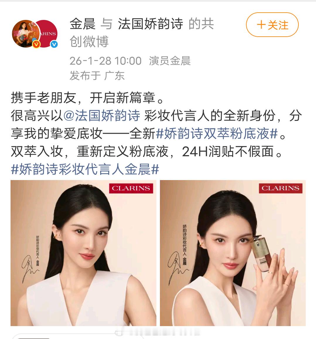 🆘金晨今晚有娇韵诗品牌直播,惊喜空降昨天刚刚官宣的彩妆代言。。。曝金晨肇事逃逸 金晨 助理顶包 交警回应金晨被曝肇事逃逸