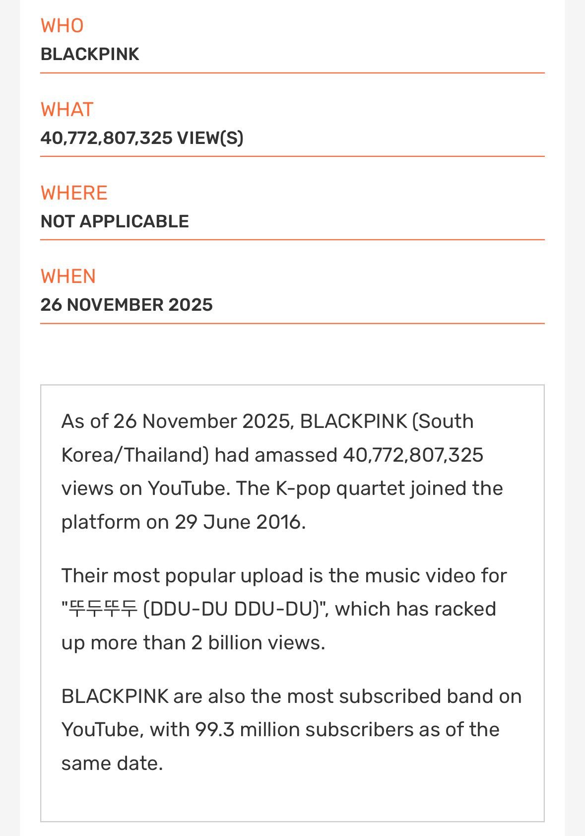 朴彩英谈BLACKPINK关系恭喜BLACKPINK再获两项新的吉尼斯世界纪录🎉🏆• YouTube上订阅人数最多的音乐团体• YouTube上观看次数最多的音乐团体恭喜BLACKPINK!!!!!