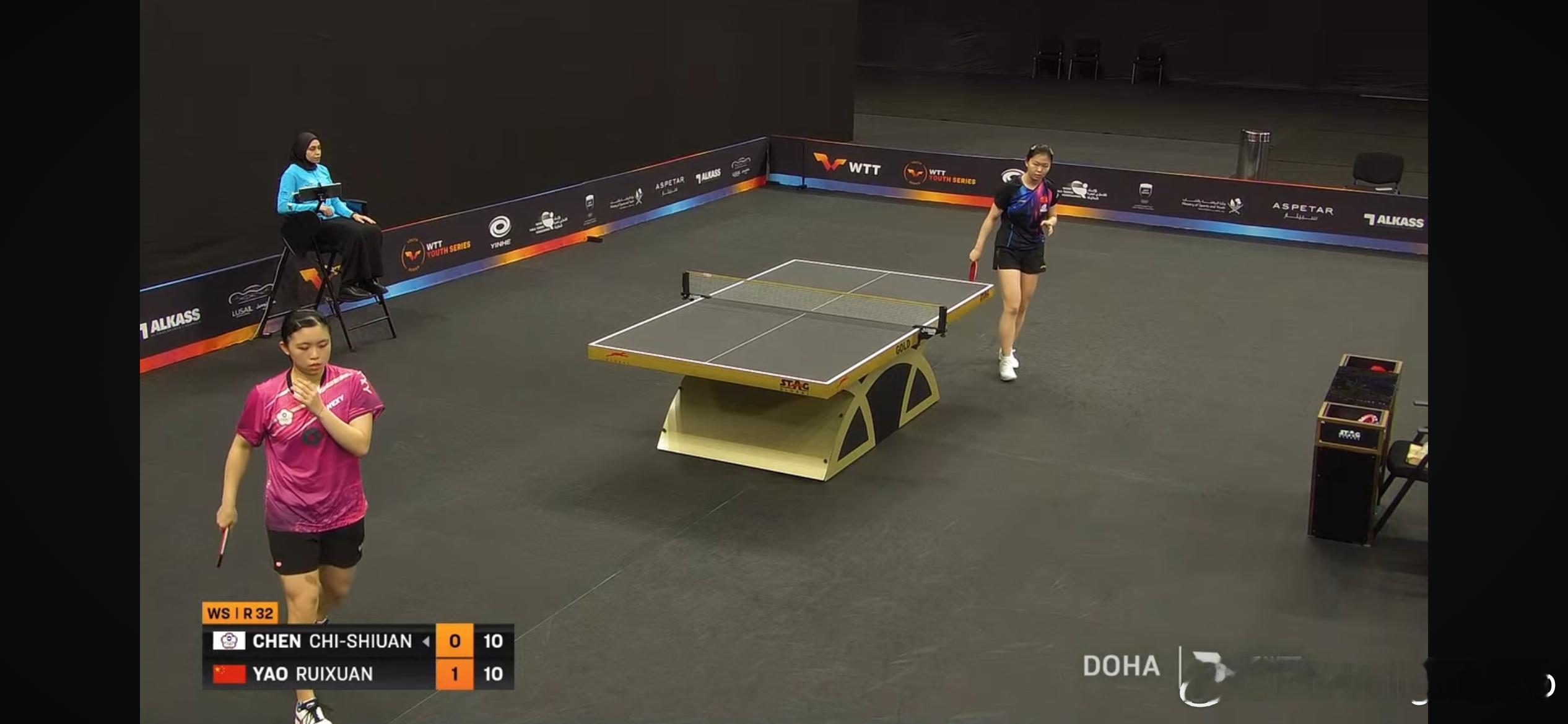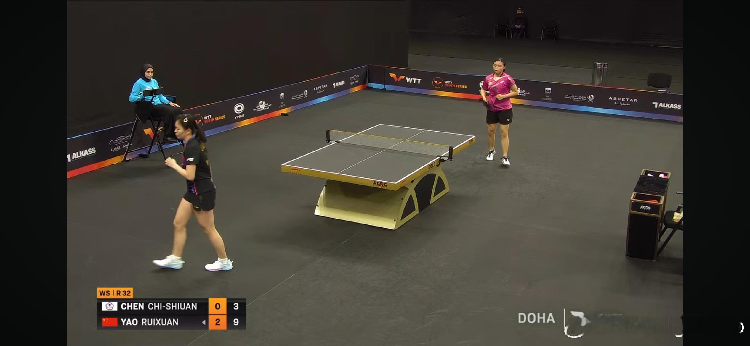 WTT支线赛多哈站2026 女单1/16决赛:🇨🇳杨屹韵3比0江芷林🇭🇰(11-7,12-10,11-4)🇨🇳姚睿轩3比0陈琦媗(中国台北)(14-12,12-10,11-5)