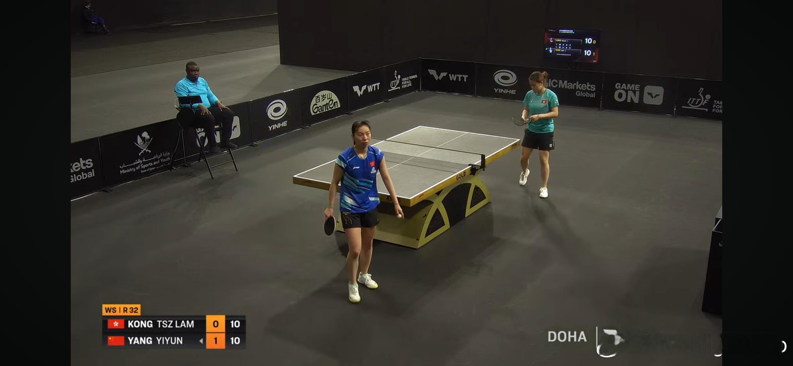 WTT支线赛多哈站2026 女单1/16决赛:🇨🇳杨屹韵3比0江芷林🇭🇰