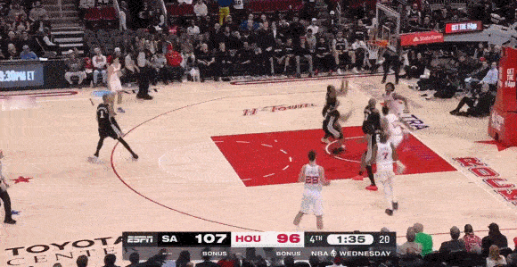 今日nba赛场上的MVP文班亚马!西部强强对话马刺技高一筹客场111:99逆转火箭!文班亚马一人打爆火箭内线!全场最高分28分16个篮板5个盖帽3助攻2个抢断!决胜第四节独得13分收割胜利!请欣赏精彩进球吧!外星人👽来了