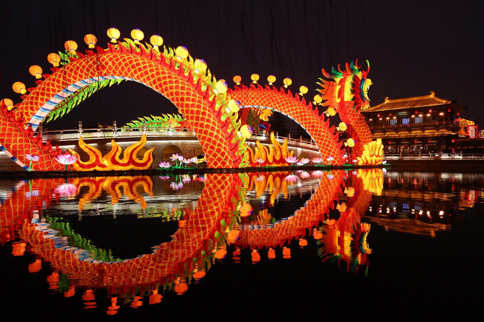 西安曲江池畔的“盛唐第一园”——西安大唐芙蓉园内,千灯如星河倒悬,一光一脉皆是文明的低语,一影一形俱为时光的回响……