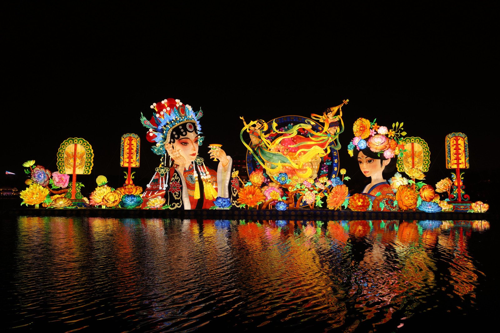 此次灯会以“国潮百戏·水陆风情”为核,39组唐诗灯组将300余首经典诗句化作可步入的光影长卷;苏绣、竹编、戏曲头面等30余项非遗技艺被植入灯影,成为“可进入、可感知”的活态非遗馆。