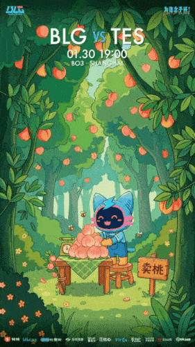 TES对阵BLG赛前海报:闪击;卖桃