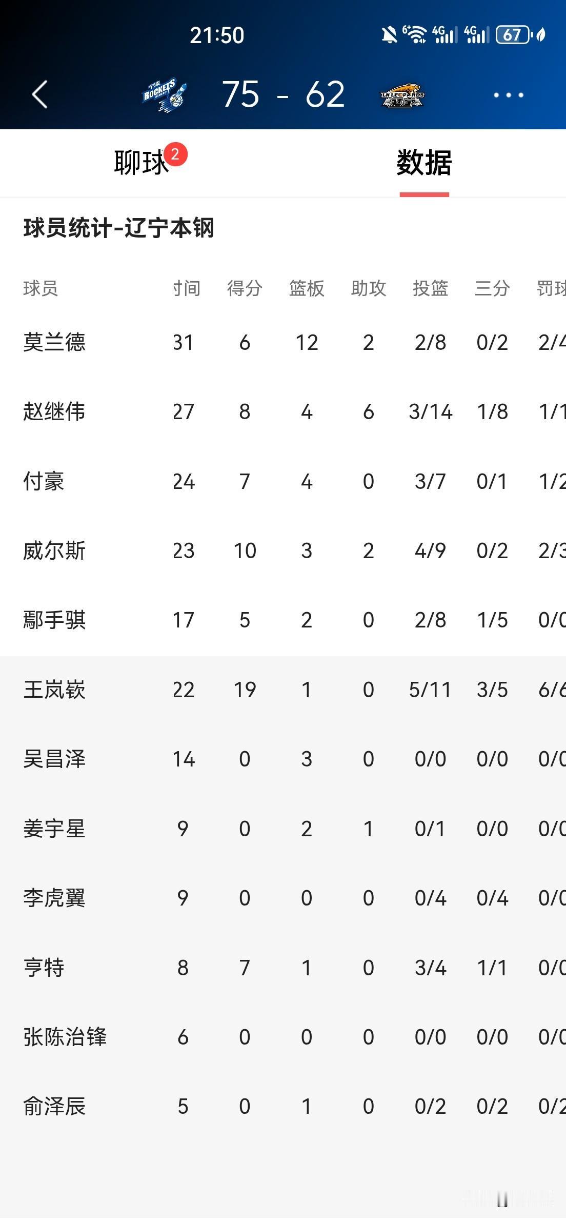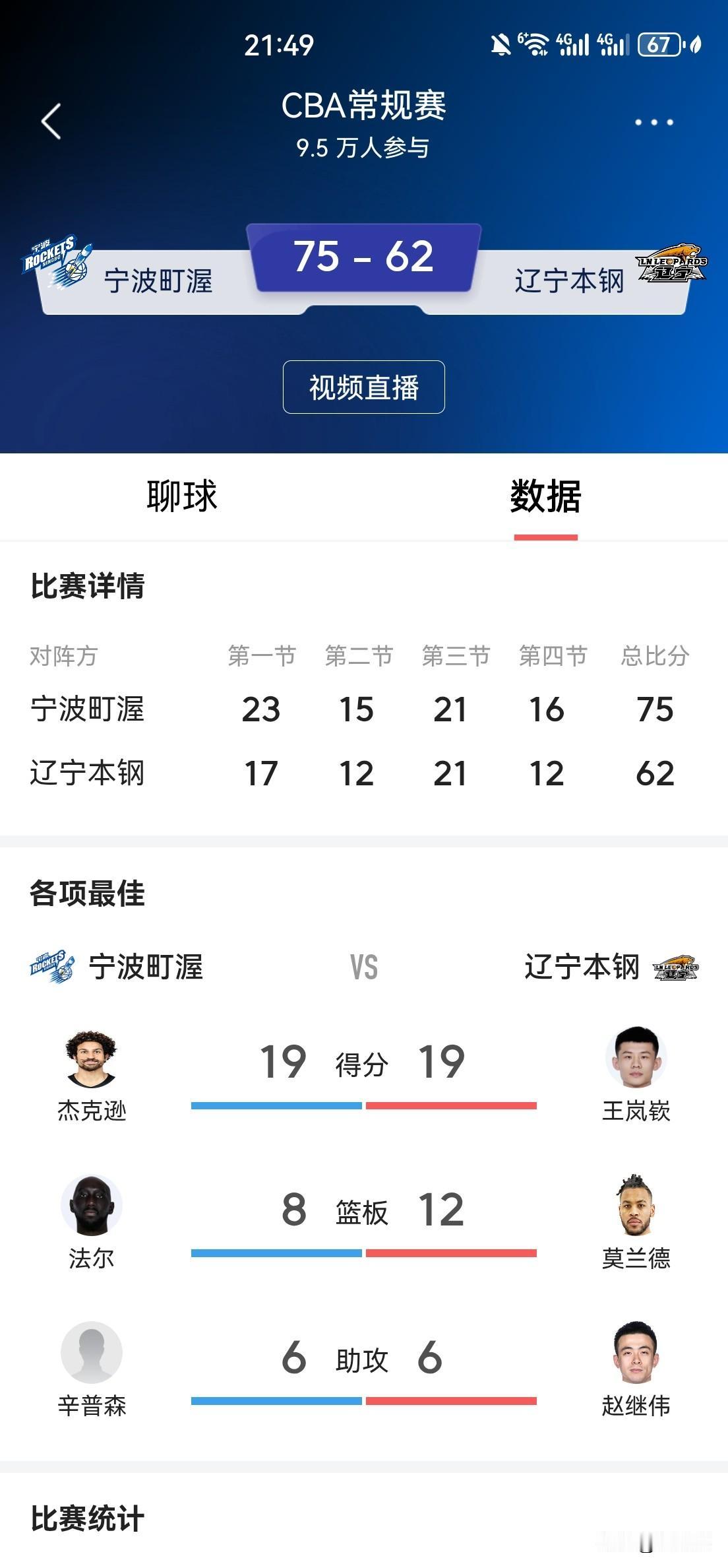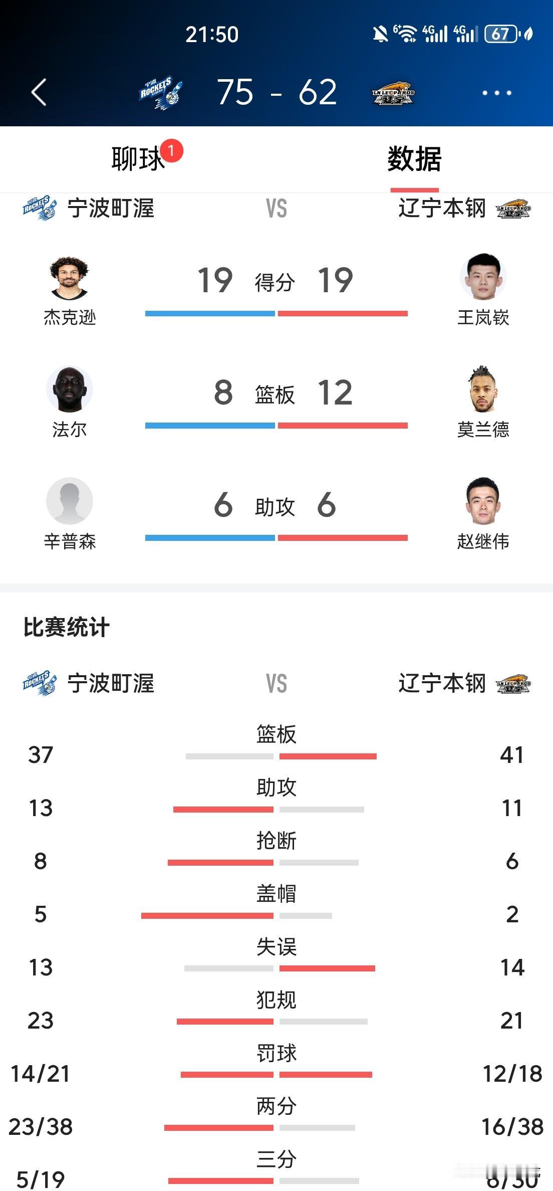 核心球员无心恋战,乌戈也束手无策,辽宁全场仅得62分,13分之差不敌宁波。 辽宁