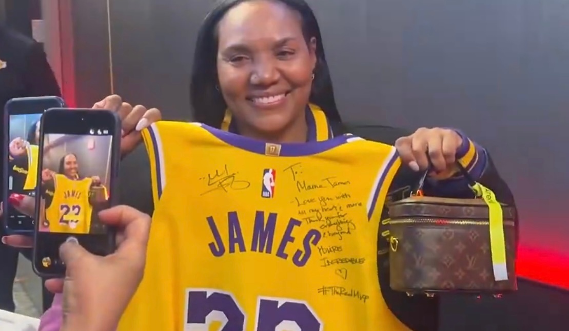 今天,詹姆斯把球衣送给了母亲,上面写道:“妈妈,我全心全意地爱你,甚至更多。感